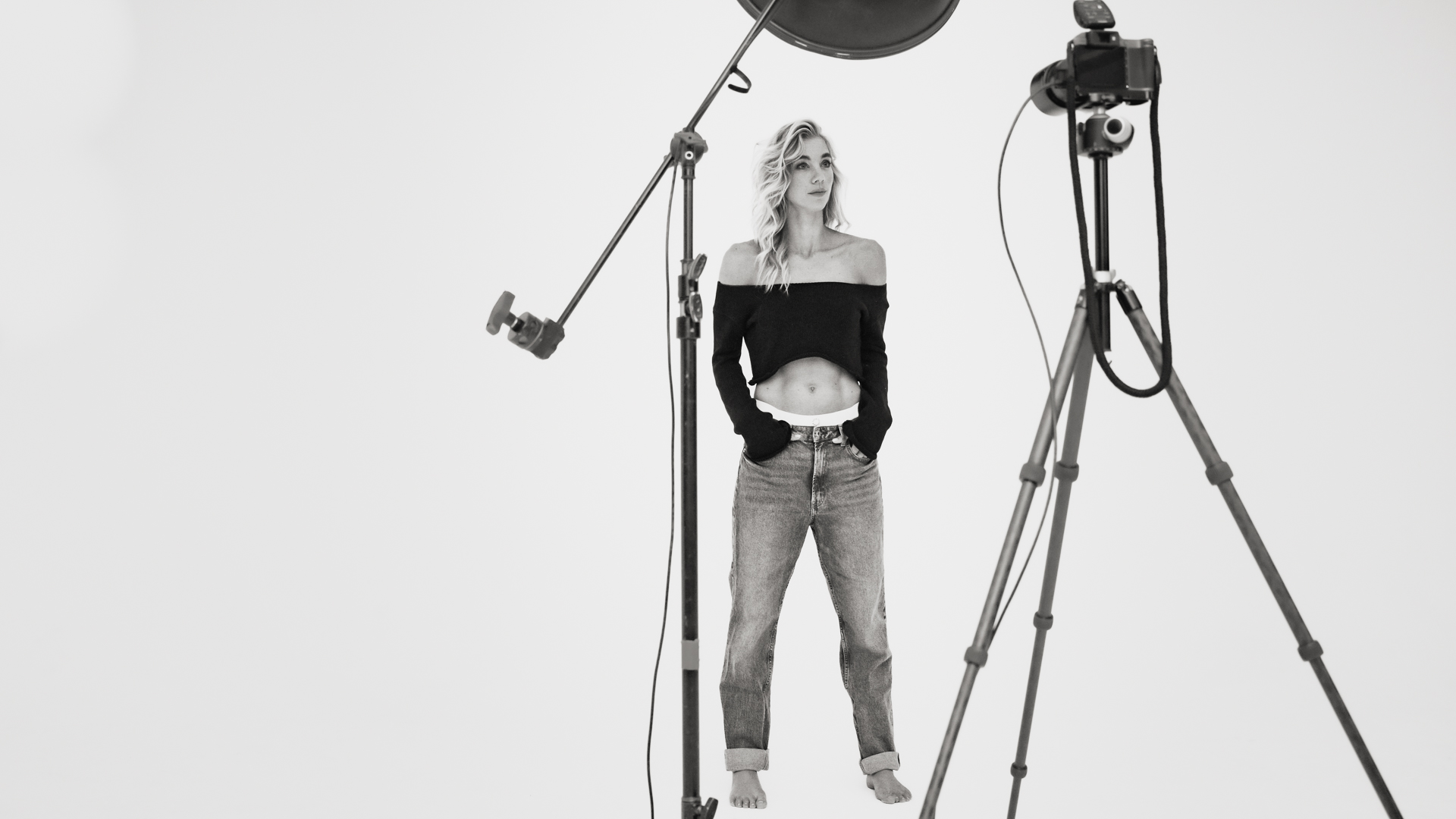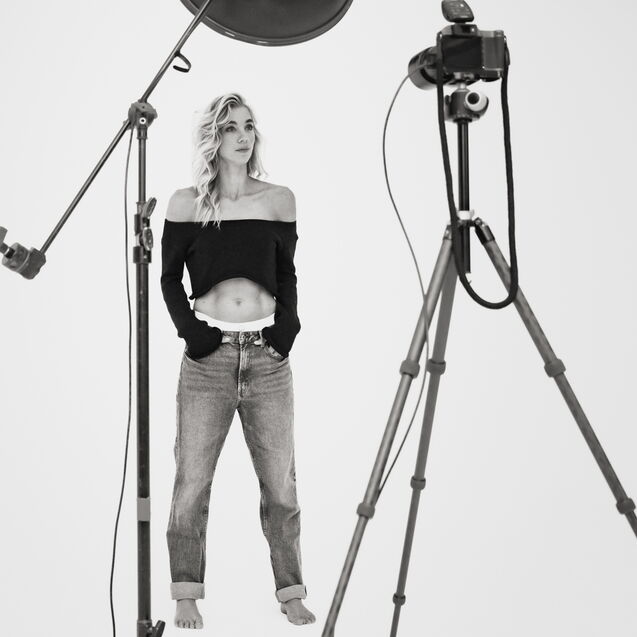 ¶ Auch das zweite Set mit nur einem Beauty-Dish war recht einfach, verlangte aber mehr Feinabstimmung. Einmal, weil diese Schüsseln generell etwas mehr Kenntnisse in Lichttechnik verlangen, aber Peter wollte zeigen, daß man auch in einem hellen Studio durchaus Bilder mit einem Hollywood-Look produzieren kann. – Doete war auf den Punkt präsent. Man merkte einfach, das modeln macht ihr einfach Spaß. Sie wechselte im Sekundentakt zwischen listig-verspielt, glamourös, nachdenklich bis hin zu straight-into-the Kamera. Perfekt.