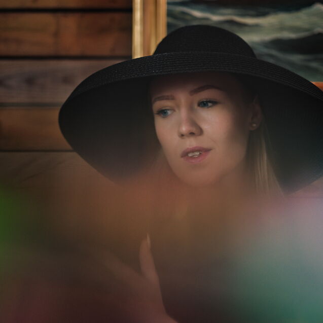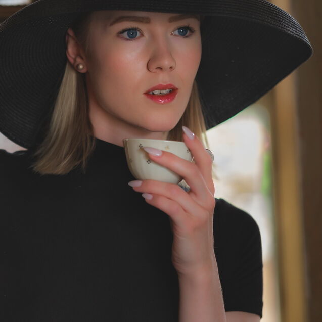 ¶ Dieser Post ist keine colorierte Doublette, sondern die Bilder sind in eigenständigem, farbigen Look editiert, – stimmungsvoll und so, wie ich Lisa im Ambiente von »Fröken Trulls« wahrgenommen habe: etwas kontrastarm, wenige tiefe Schwärzen, auch bedingt durch das leicht diffuse, warmes Licht, was durch die zahlreichen antiken Einrichtungsgegenstände verstärkt wurde. – Eine phantastische Lichtstimmung und nicht verwunderlich, warum die Bilder von Helmut den Weg auf den Titel vom MOEVIR-Magazin gefunden haben ( Cover 10-2023 ).