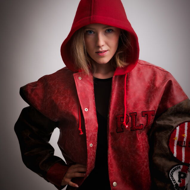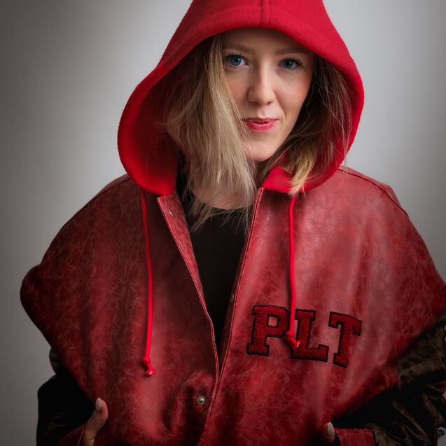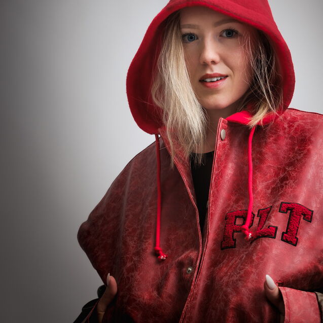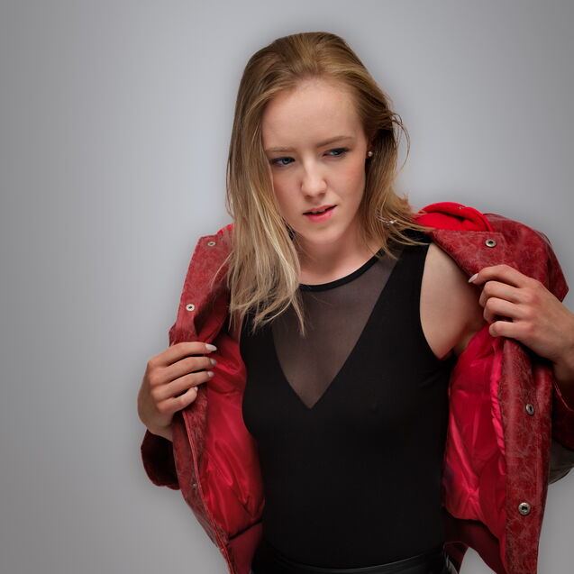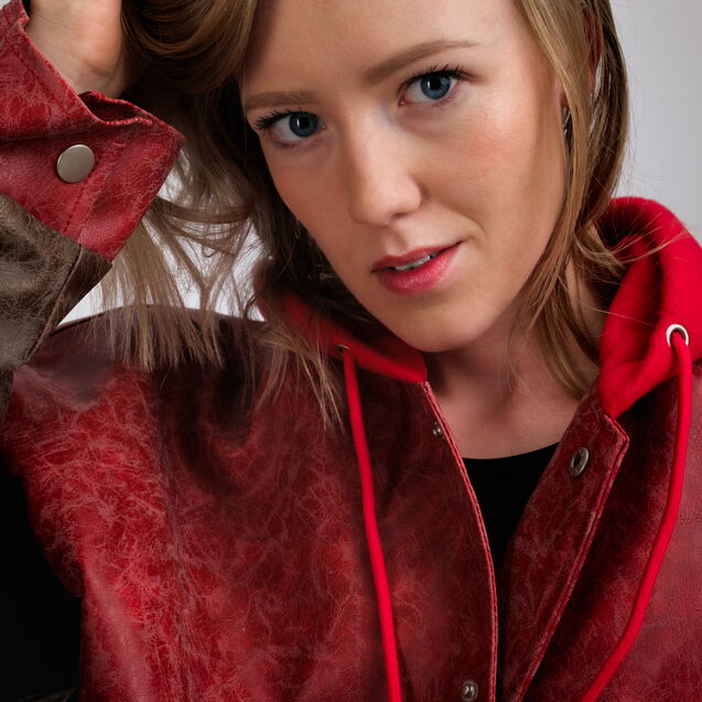 ¶ Ich habe mich mit Lisa auf so eine XXL-Baseball-Jacke und den Fan-Look geeinigt. Dazu das Licht etwas anders, – knalliger eingestellt und Lisa ein wenig gepushed (sorry dafür) … schien ihr aber Spaß zu machen. Also kein klassische Model-Posing, sondern Power pur! Die blonden Haare, das harte Licht und das extreme Rot paßten perfekt. Cool! 😎😂