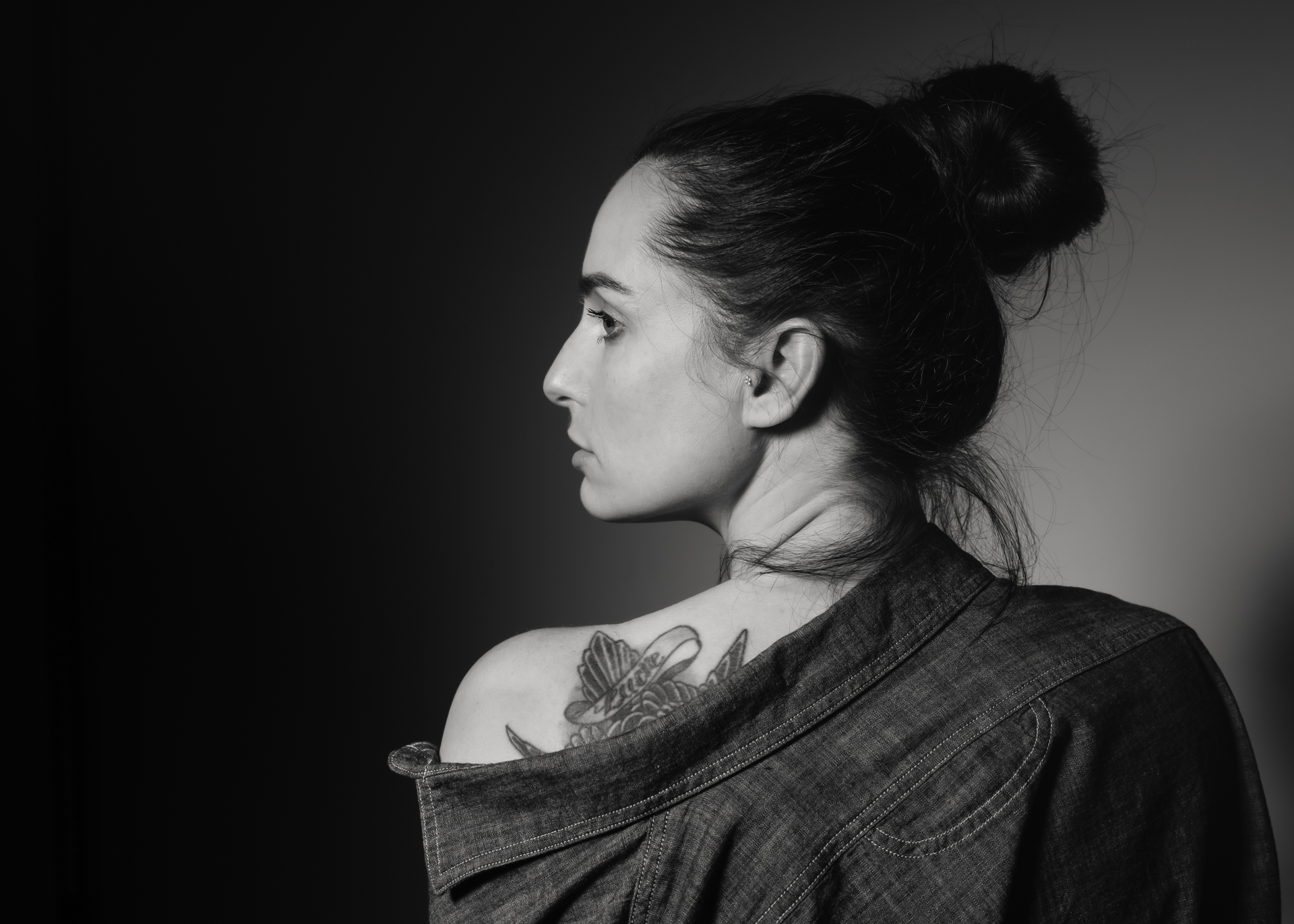 ¶ Wir haben uns dann mal an einem Nachmittag getroffen und unseren Ideen freien Lauf gelassen. – Erst mal ins Studio mit wenig Klimbim: nur ein Licht (Beauty-Dish), daß wars. – Dann raus in die nähere Umgebung, wobei ich etwas mit einem mobilen Blitz ausprobieren wollte, – hatte ich mir bei Peter Coulson abgeguckt (Blitz an der Kamera, Paparazzi-Style) … Zum Schluß hin wurde es arg dunkel und Cathrin war nicht so wirklich zu bremsen, also Bilder mehr situativ und mit Bewegungsunschärfe. Ich liebe solche Bilder, – das Cover-Bild war denn auch schnell gefunden!