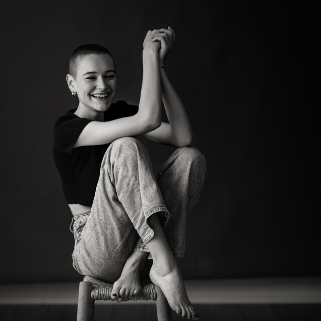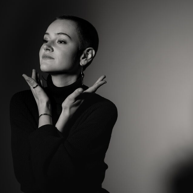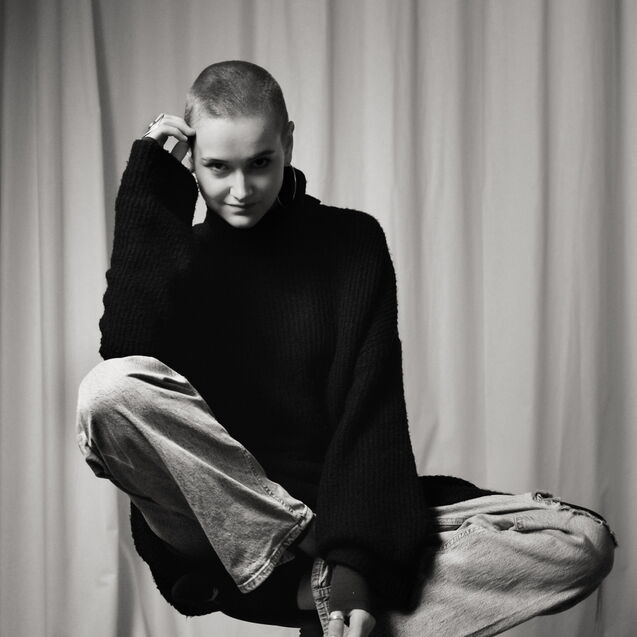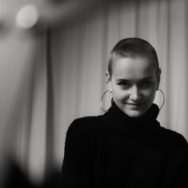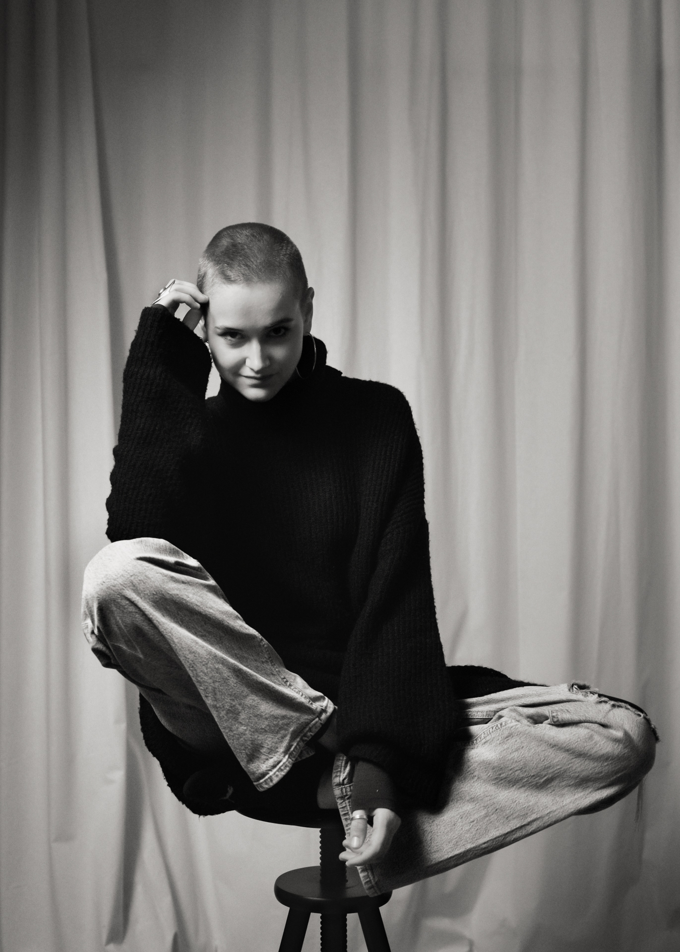 ¶ Chiara wohnt nicht in Köln oder so um die Ecke, wir hatten uns deshalb zu einem zweitägigen Shooting verabredet. Doch wenige Tage vor dem geplanten Studio-Shooting kam die Message rein: »Kurzschlussentscheidung ... ich habe meine Haare abrasiert!. Ich weiß, doof vor einem Shooting. … Bitte kill mich nicht …«.