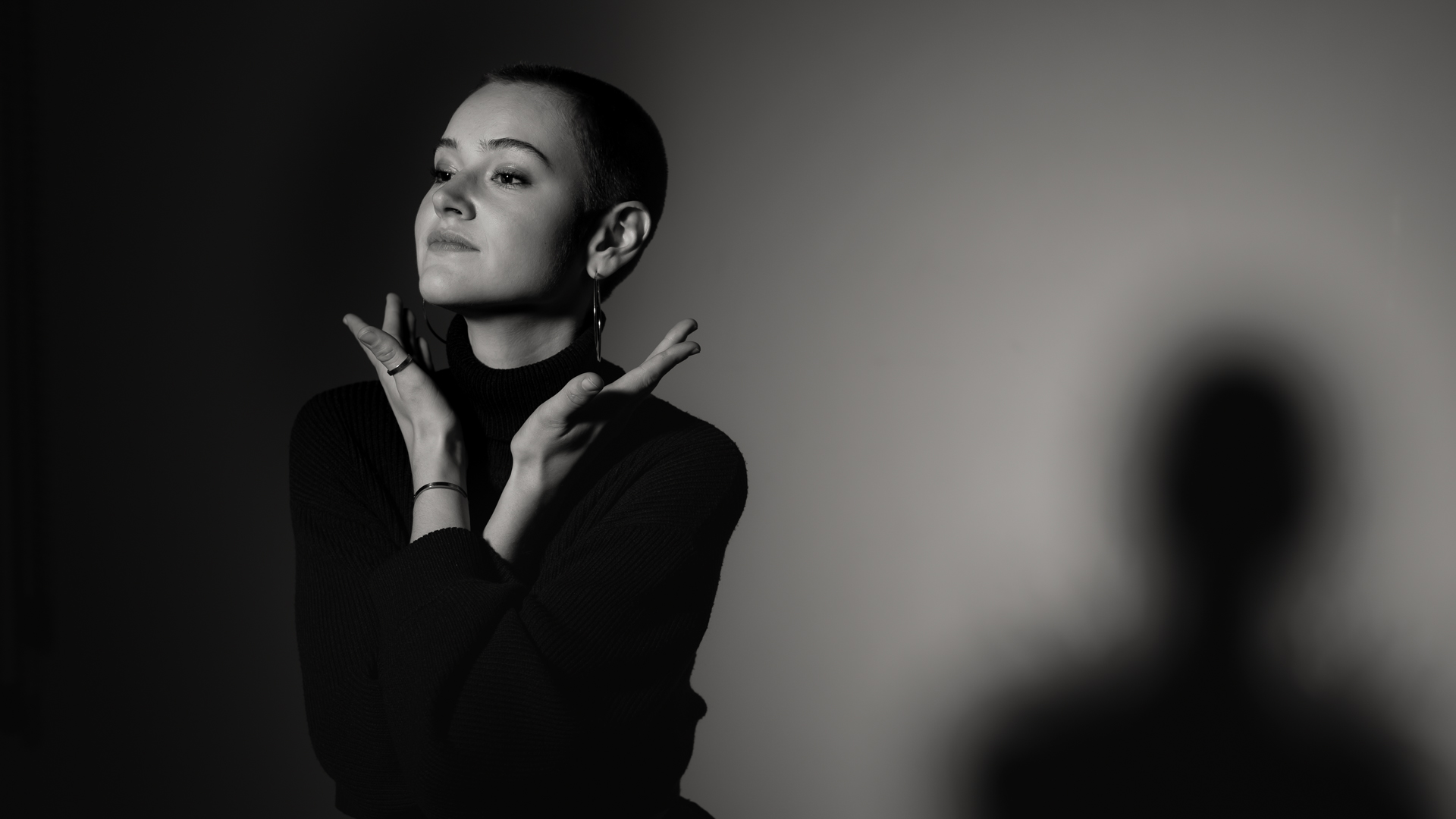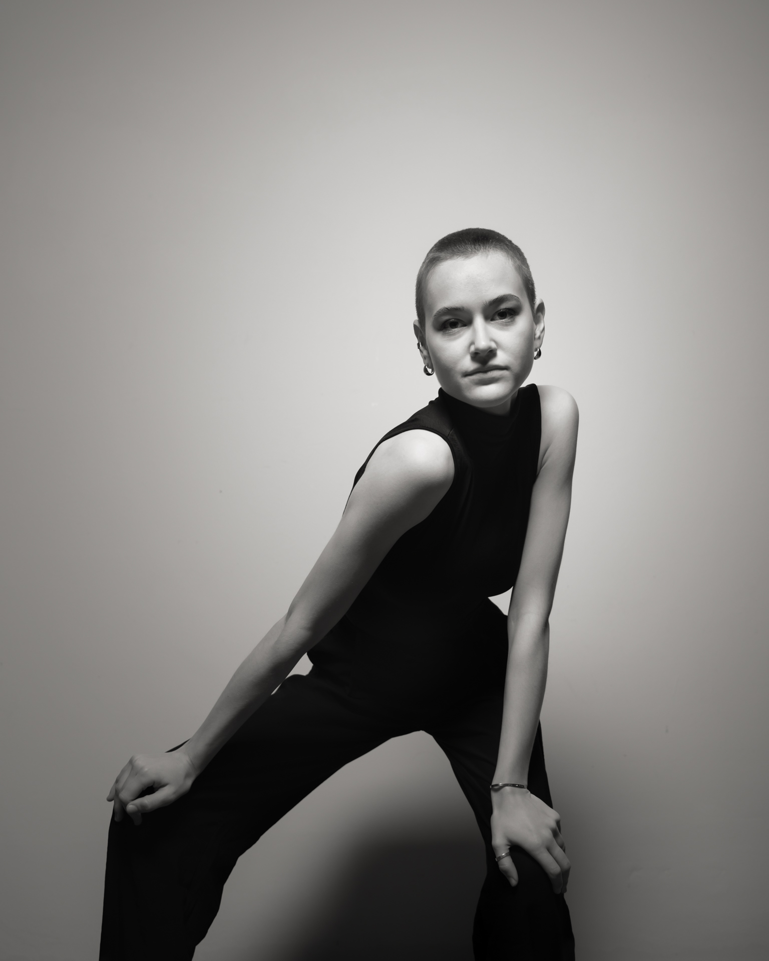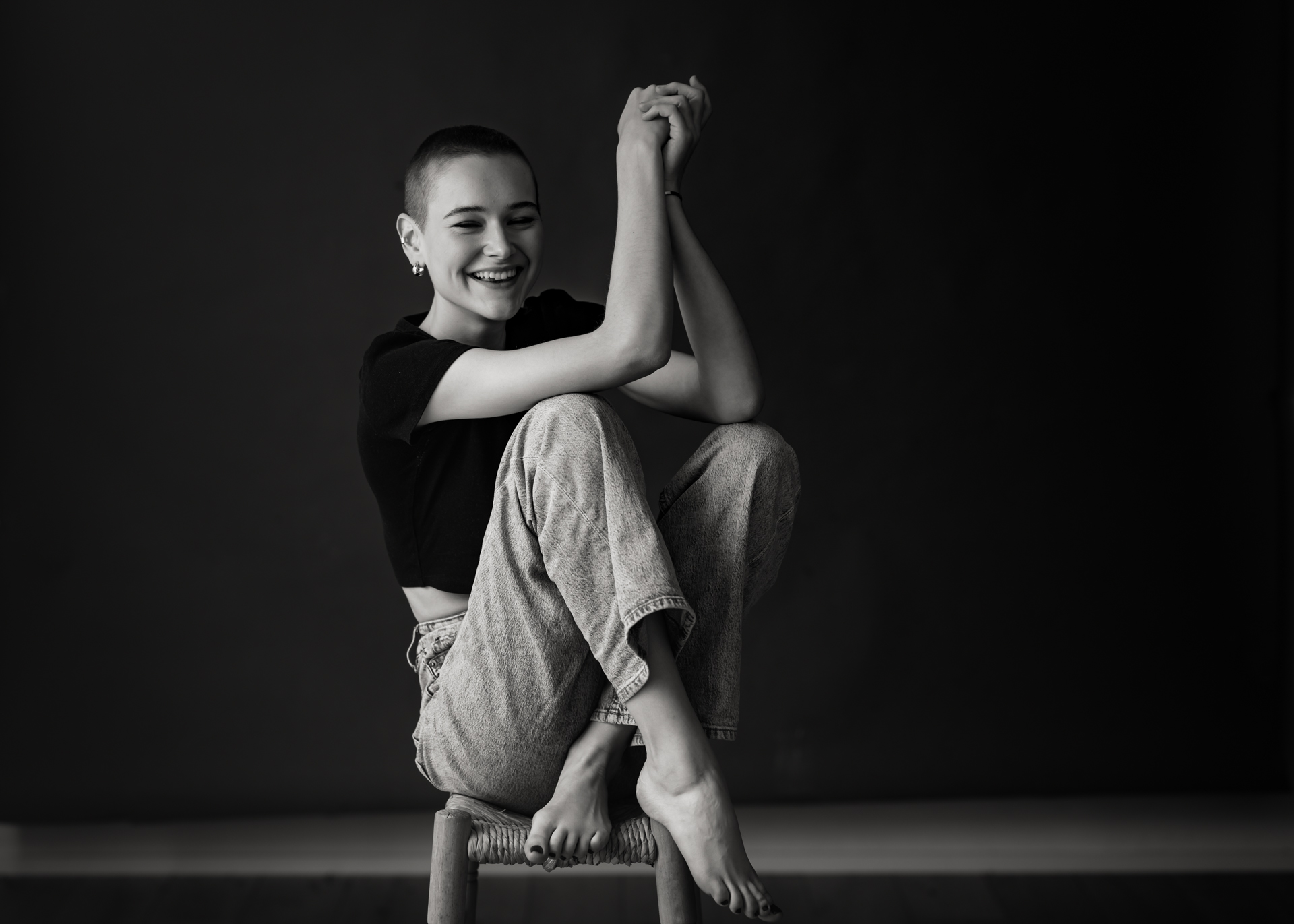 ¶ Chiara wohnt nicht in Köln oder so um die Ecke, wir hatten uns deshalb zu einem zweitägigen Shooting verabredet. Doch wenige Tage vor dem geplanten Studio-Shooting kam die Message rein: »Kurzschlussentscheidung ... ich habe meine Haare abrasiert!. Ich weiß, doof vor einem Shooting. … Bitte kill mich nicht …«.