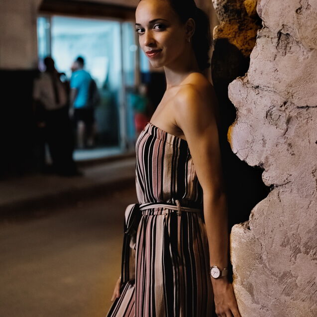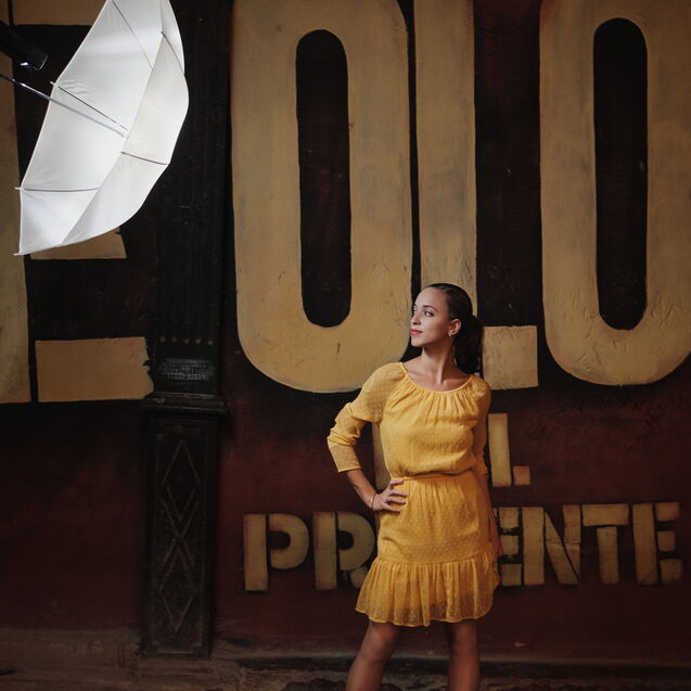 ¶ Aber zunächst hatte ich die Idee Claudia in den Straßen der Altstadt von Havana zu photographieren. – Eine große Grafitti-Wand vis-a-vis vom Tabarish hatte es mir schon seit Tagen angetan. Gerade der Gegensatz der etwas »unaufgeräumten« kubanischen Realität und der eleganten Präsenz von Claudia reizte mich dabei sehr. Also »go for it«!