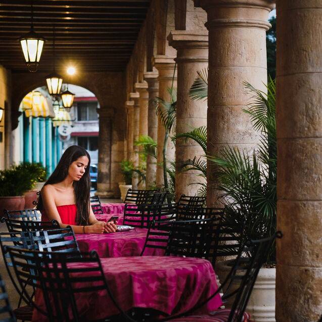 ¶ Wie in vielen südlichen Ländern geht auch in Kuba die Sonne sehr schnell unter. Je schräger der Winkel, desto dramatischer … ein Spotlight im Studio ist dagegen geradezu eine »weiche Softbox«. Jedenfalls war diese Lichtstimmung für Grettell im ihrem rotem Kleid wie gemacht, herrlich!