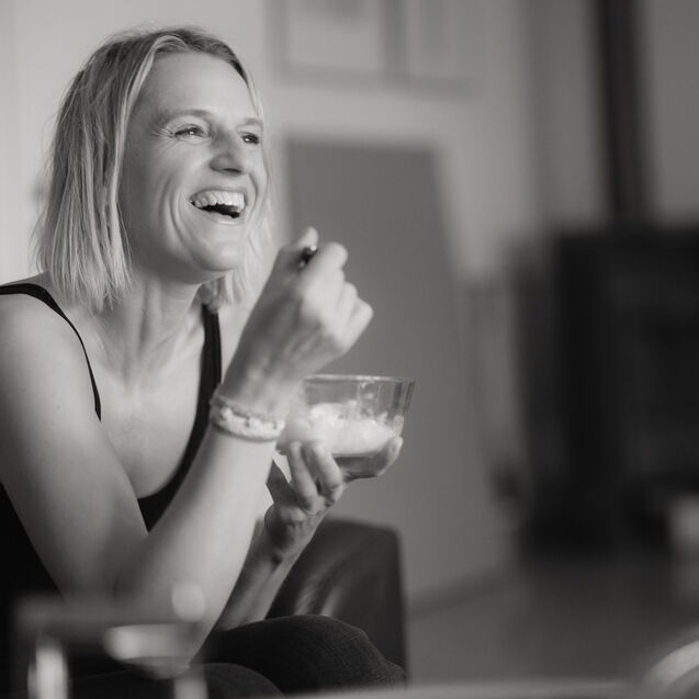 ¶ Na ja, und sie hatte richtig Lust auf ein ausgiebiges Shooting. – Im Vorfeld hatten wir schon verschiedene Setups und Looks diskutiert. Es wurden dann insgesamt fünf Setups! Zum Aufwärmen haben wir minimalistisch, in einem großen, hellen und lichtdurchfluteten Raum angefangen. Eine riesige Fensterfläche (= Softbox!) und fertig war das Licht-Setup. Karo mal etwas »sonniger«, weniger kontrastreich … gut gelaunt und sehr aufgeräumt. – Man sieht es der Bildstrecke an: ein streßfreies, locker-flockiges Shooting mit hohem Spaßfaktor. ![]()
