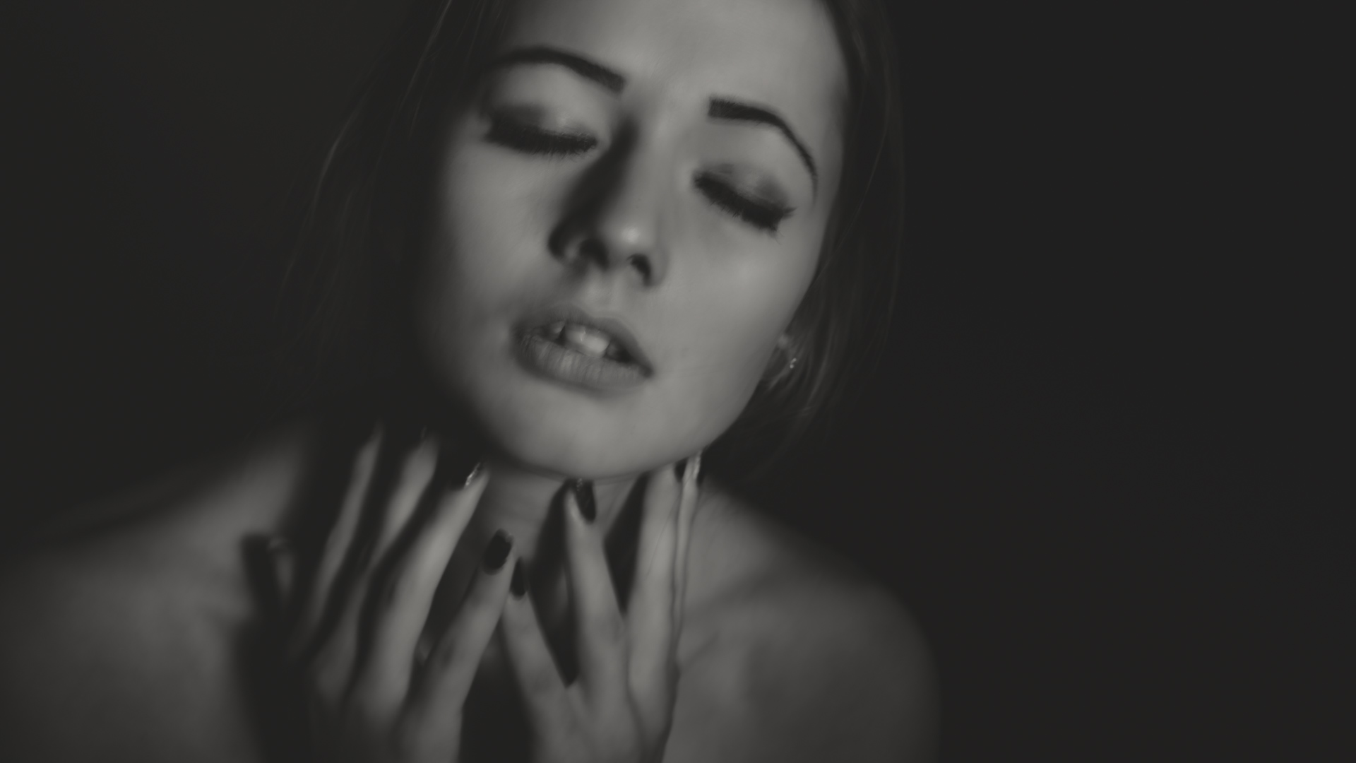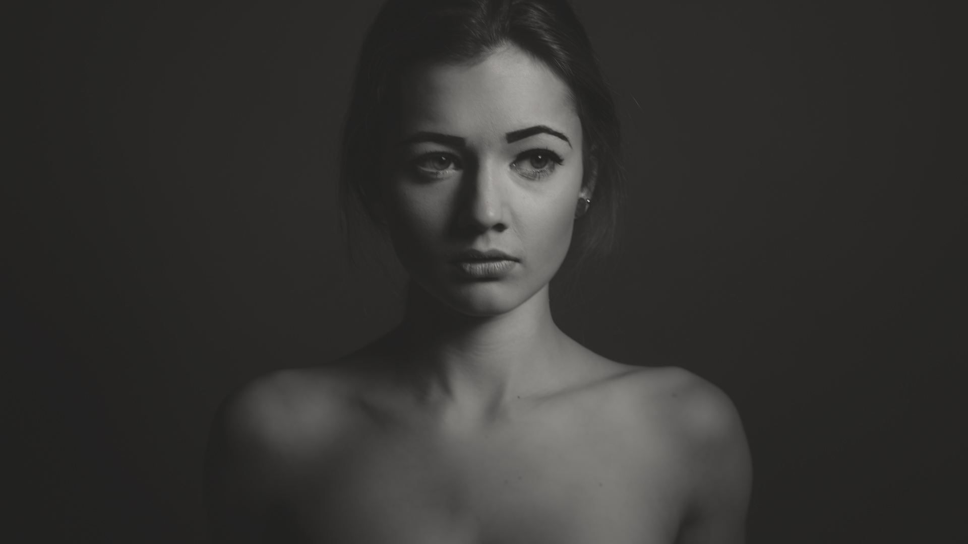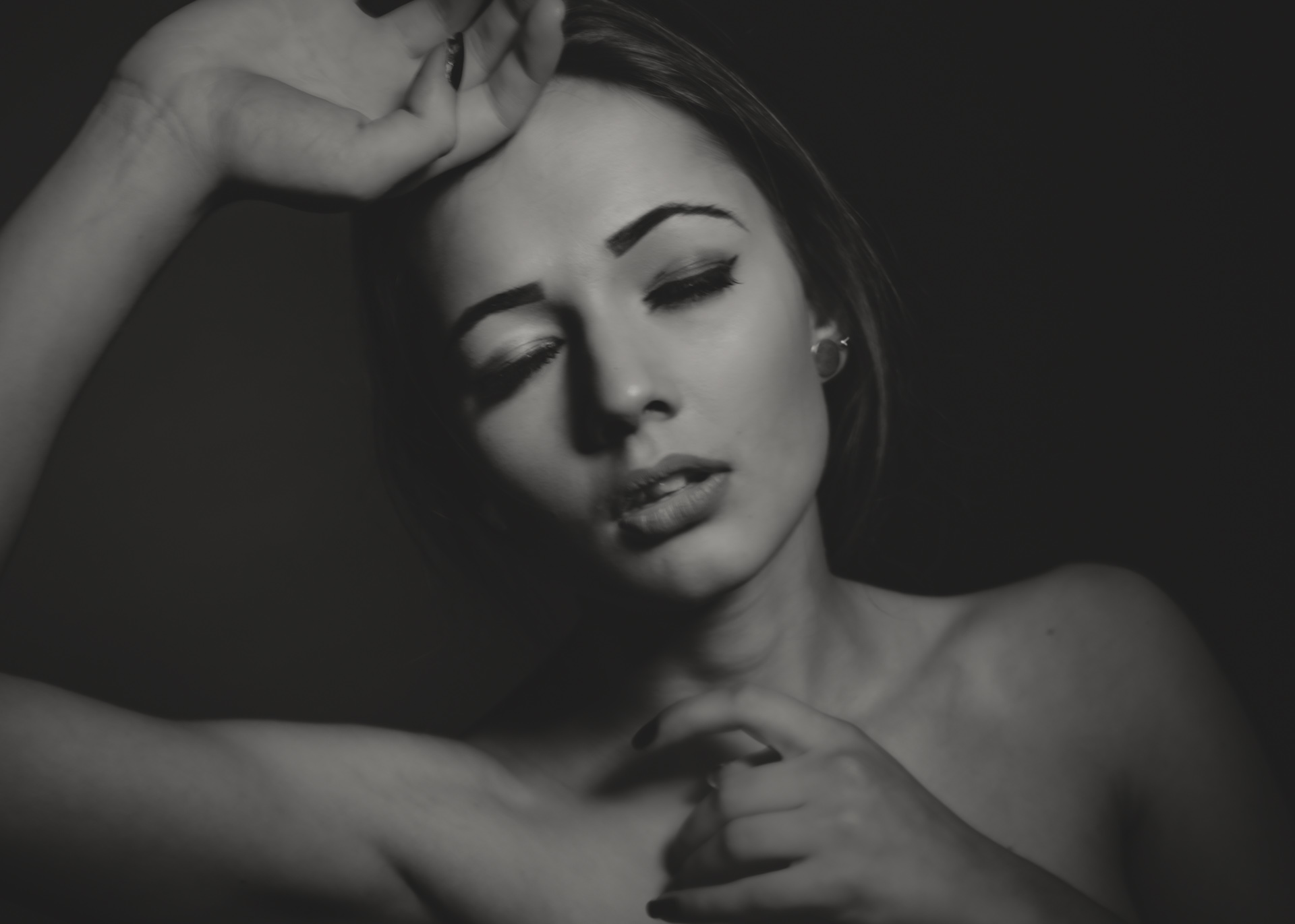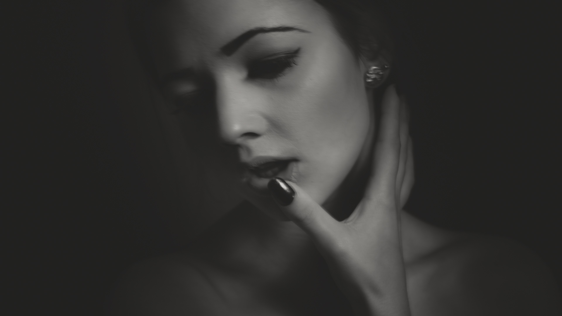 ¶ Mit nur einer Dauerlicht-Lampe und extrem langen Zeiten sind uns wirklich andere Bilder im kontrastarmen Schwarz-Weiß gelungen, bei denen Kathis Vorzüge in einem ganz anderen Licht erschienen. Sie hat unglaublich viel Potential und kann so ziemlich alles darstellen: elegant, beauty, fashion, sexy, grunge und auch vieles dazwischen, – wie hier zu sehen.