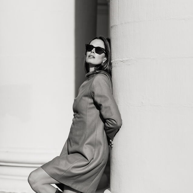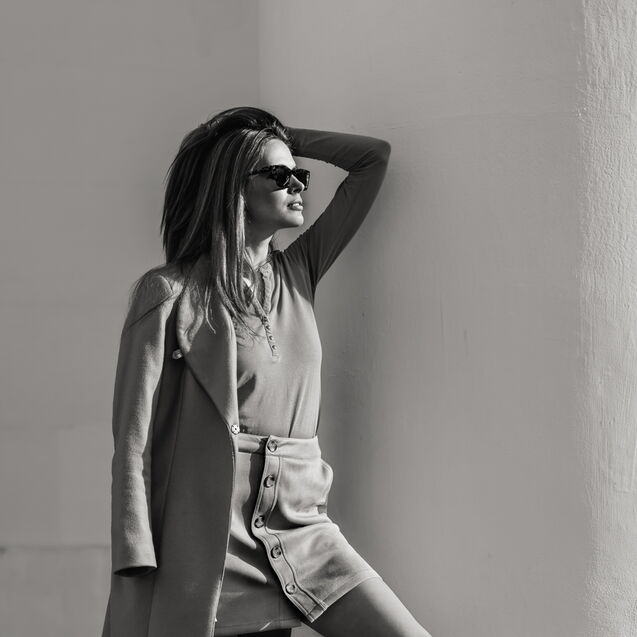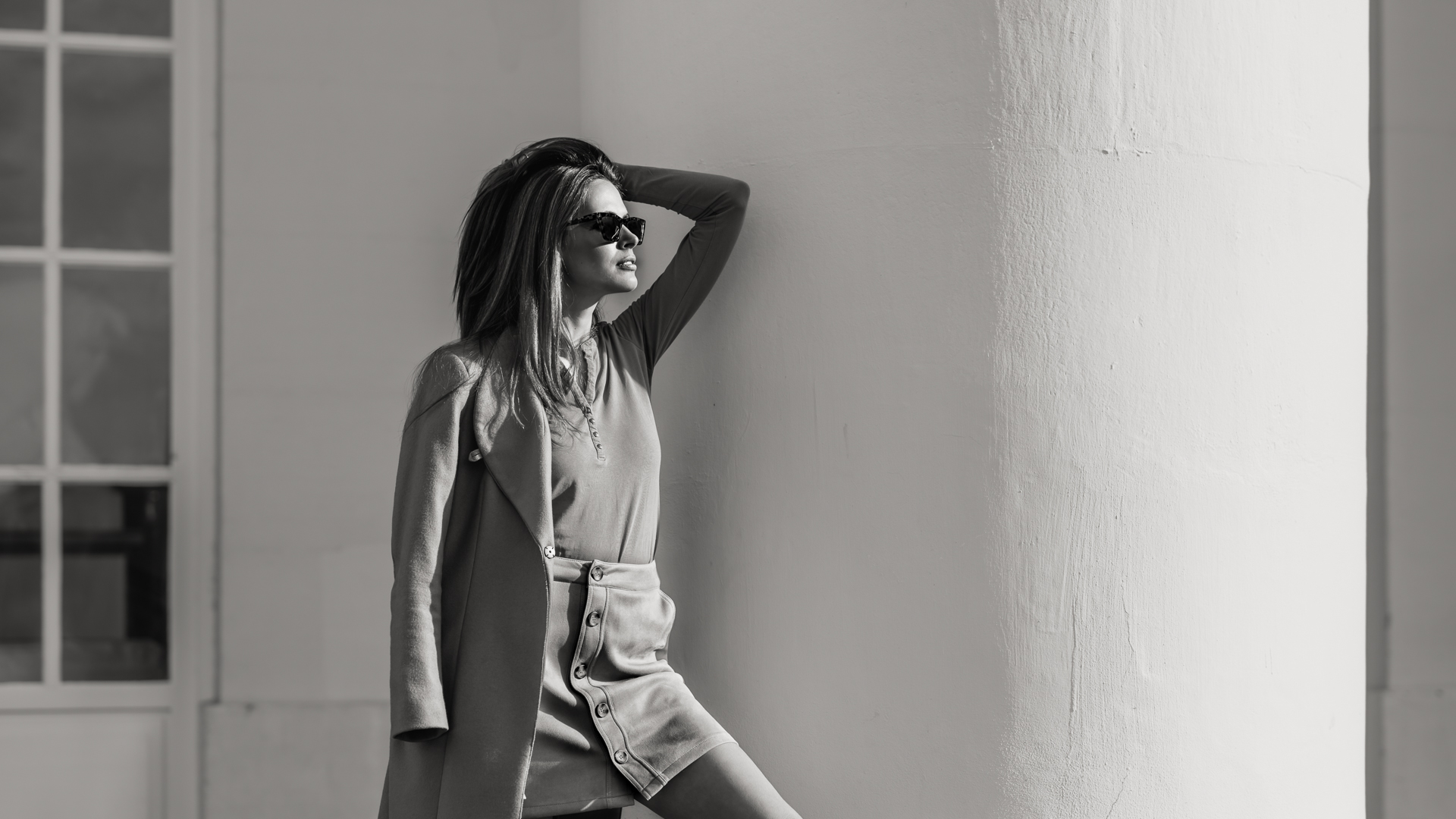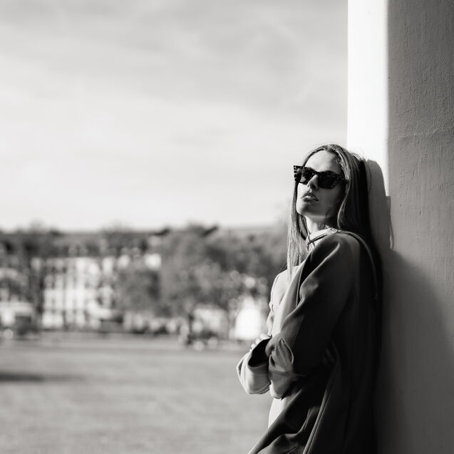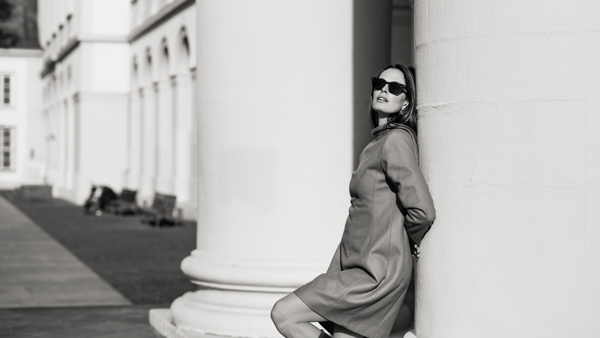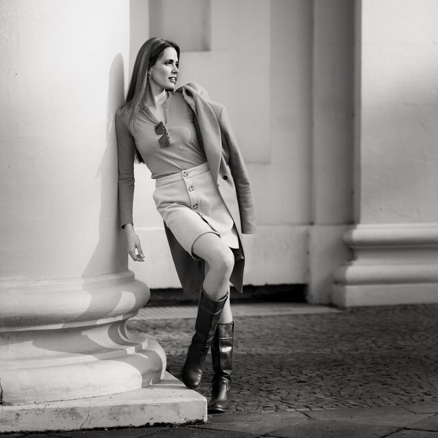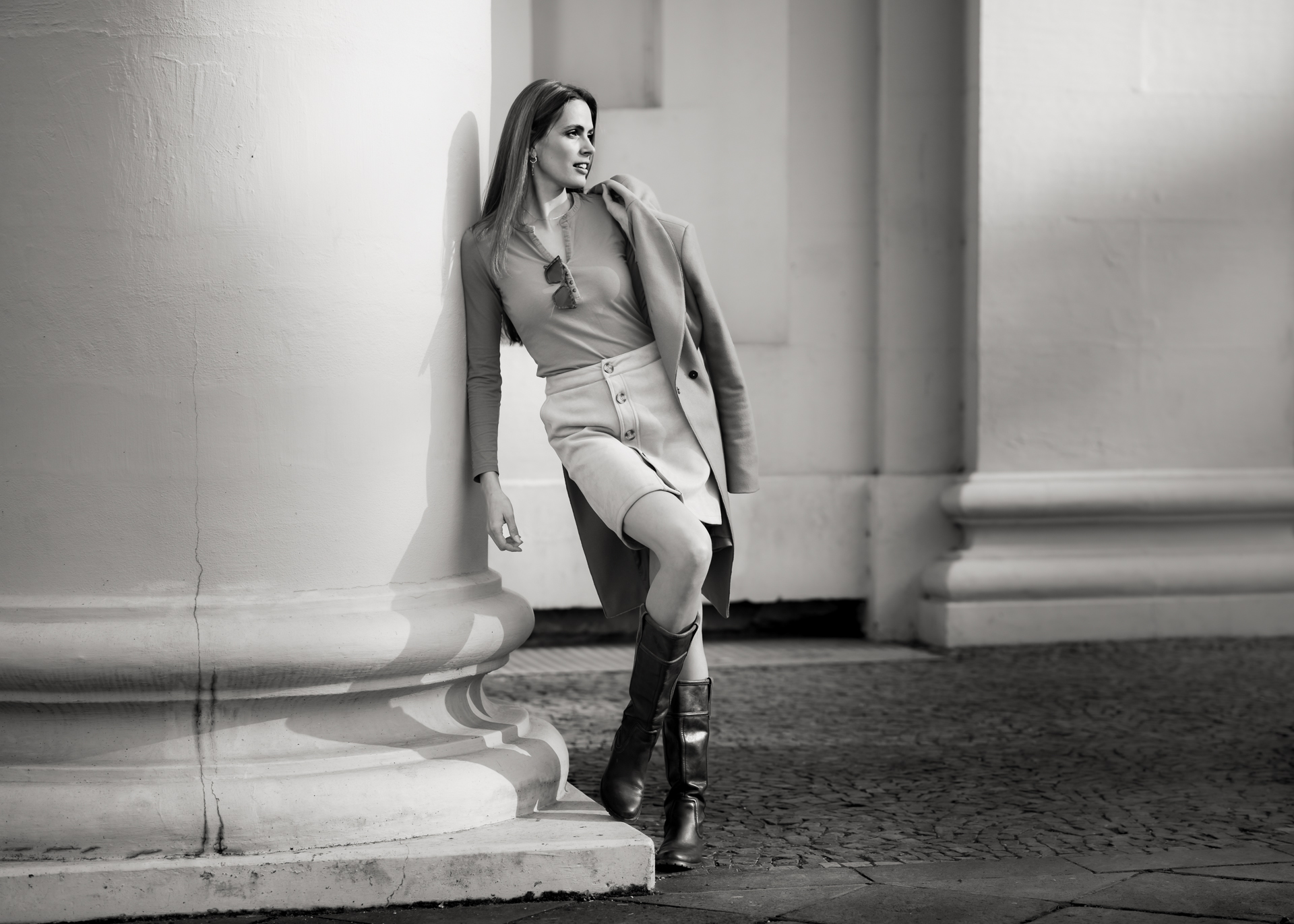 ¶ Obwohl ich das Shooting diesmal in Farbe angelegt hatte, gefielen mir am Ende doch wieder die Schwarz-Weiß-Edits mehr: Kianas Look und Style paßten perfekt zur schlichten Säulen-Architektur: elegant und klassisch!