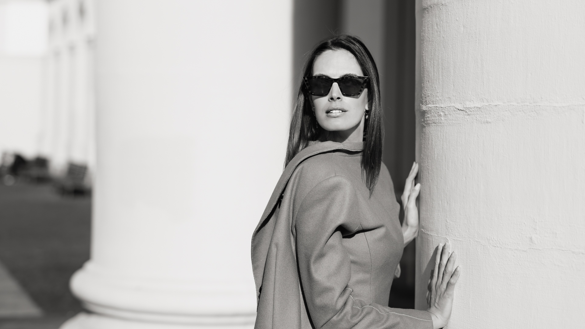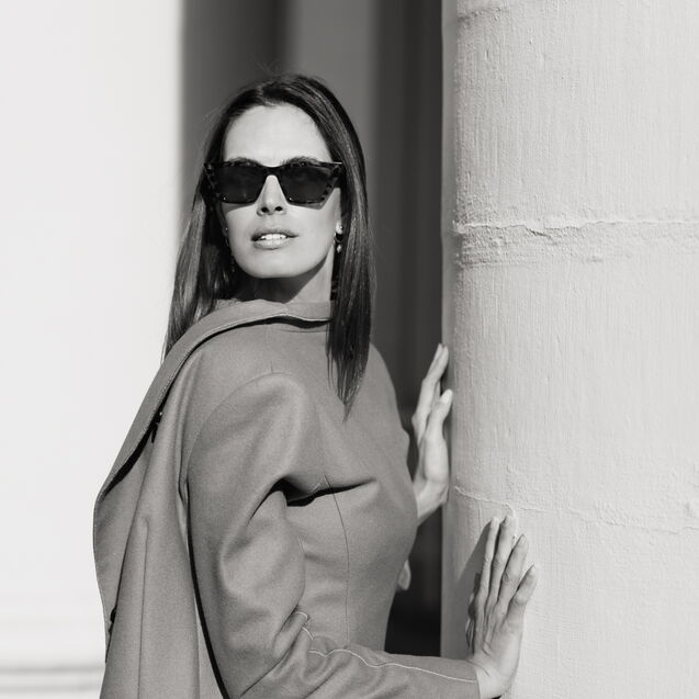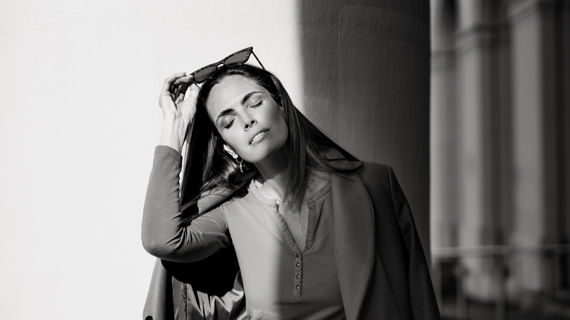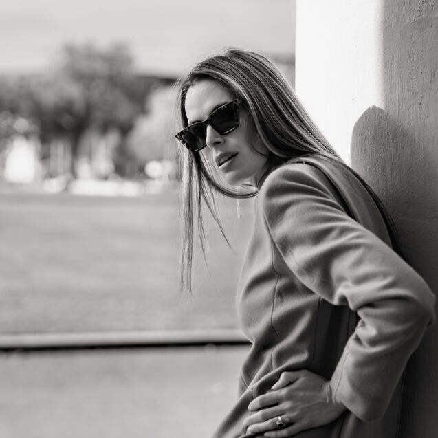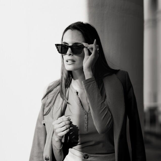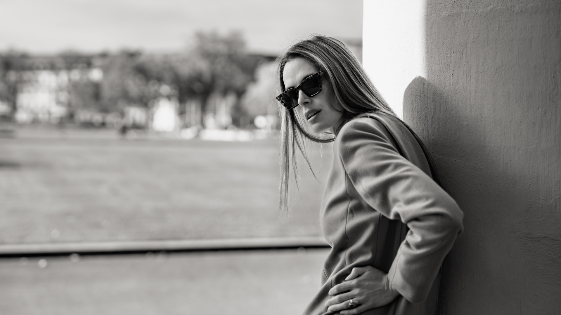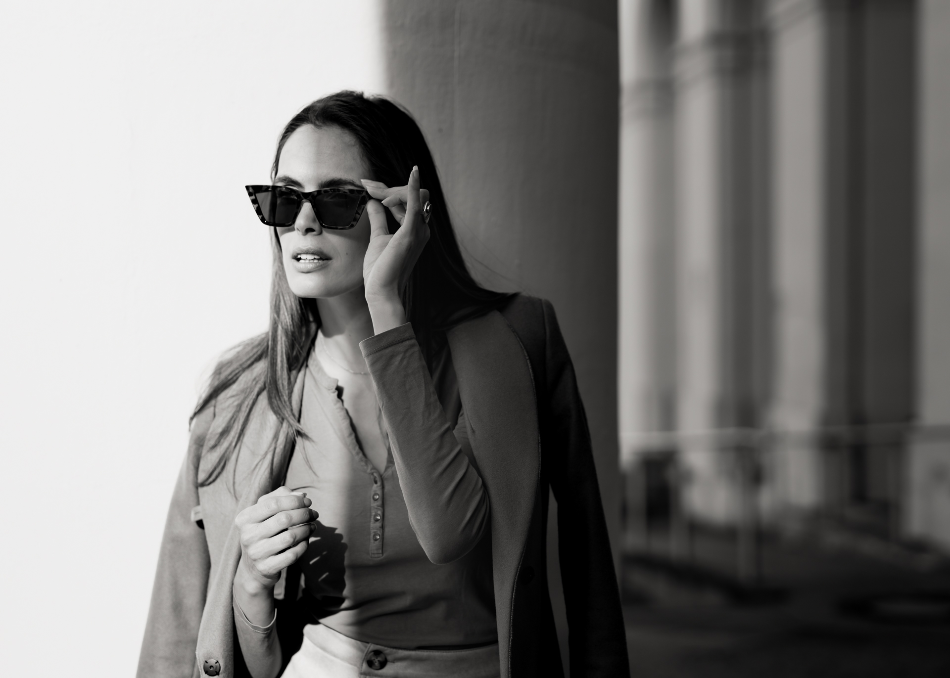 ¶ Obwohl ich das Shooting diesmal in Farbe angelegt hatte, gefielen mir am Ende doch wieder die Schwarz-Weiß-Edits mehr: Kianas Look und Style paßten perfekt zur schlichten Säulen-Architektur: elegant und klassisch!