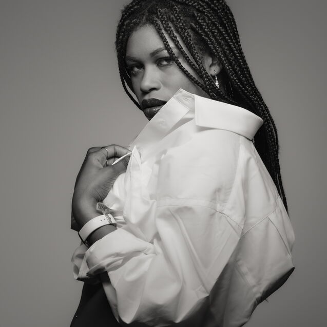¶ Für die Performance von Maggie war das aber unerheblich, – wie schon im ersten Teil, war sie nicht zu bremsen. Und sie wußte mit dem oversized »Peter-Lindbergh-Hemd« ihren sehr eigenen Look zu kreieren … Der Kontrast zwischen der dunklen Haut, ihrem markanten Gesicht und dem weißen Hemd sind die wesentlichen Elemente der Bilder …