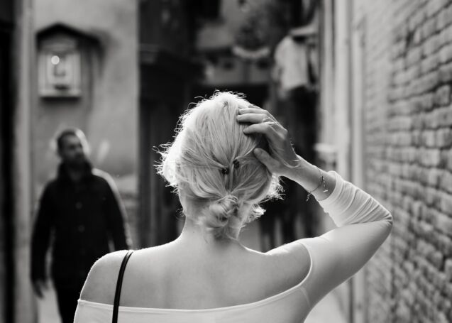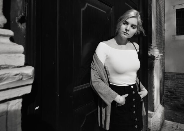 ¶ Es war früh im März und doch schien die Sonne schon mit einer derartigen Strahlkraft, daß sich viele kontrastreichen Bilder fast wie von selbst ergaben. – Man kann sich nicht der typischen Umgebung Venedigs entziehen und verfällt in Klischees. Aber hier und da bieten sich doch Umgebungen an, an denen ich Marisa gegenüber den typischen Venedig-Motiven absetzen konnte, gelegentlich auch mit Hilfe einer gewollten Unschärfe …