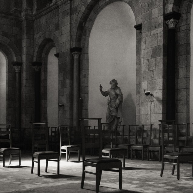 ¶ Viele Kirchen zeichnen sich im Inneren durch ein ausgeprägtes und oft eigenwilliges Lichtspiel aus; St. Georg macht da keine Ausnahme! Neben dem Haupt-Kirchenschiff gab es einen weiteren, etwas abgesetzten Bereich, – vielleicht früher eine Kapelle? Das Sonnenlicht flutete den Raum und Bestuhlung mit einem atemberaubenden, kontrastreichen Schlaglicht. –