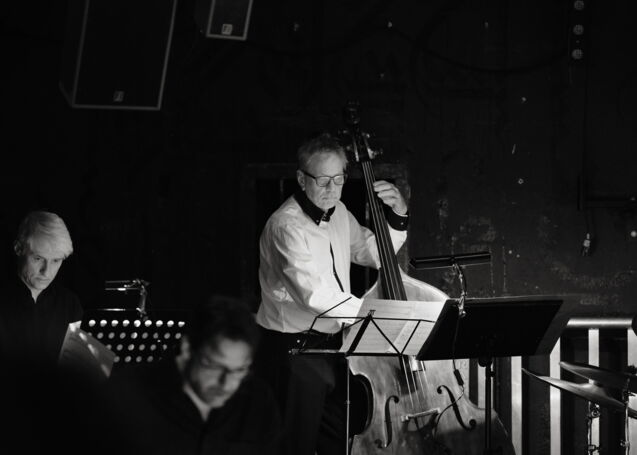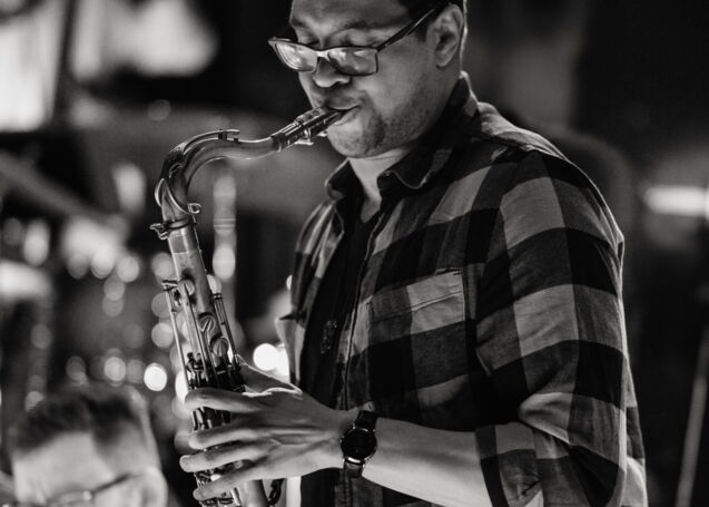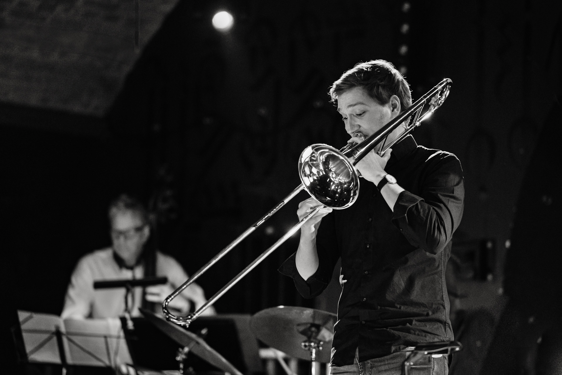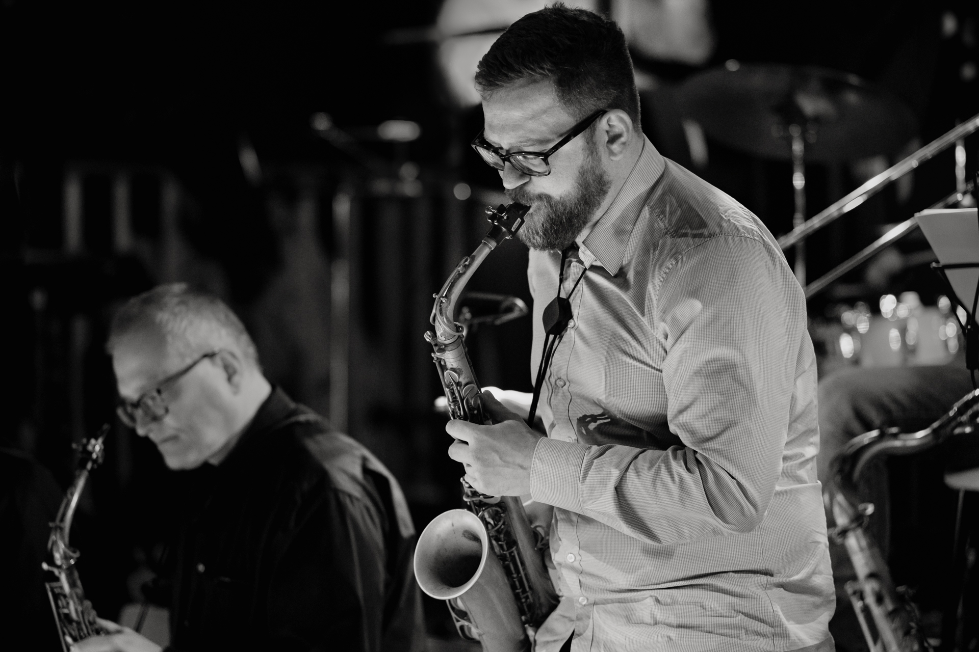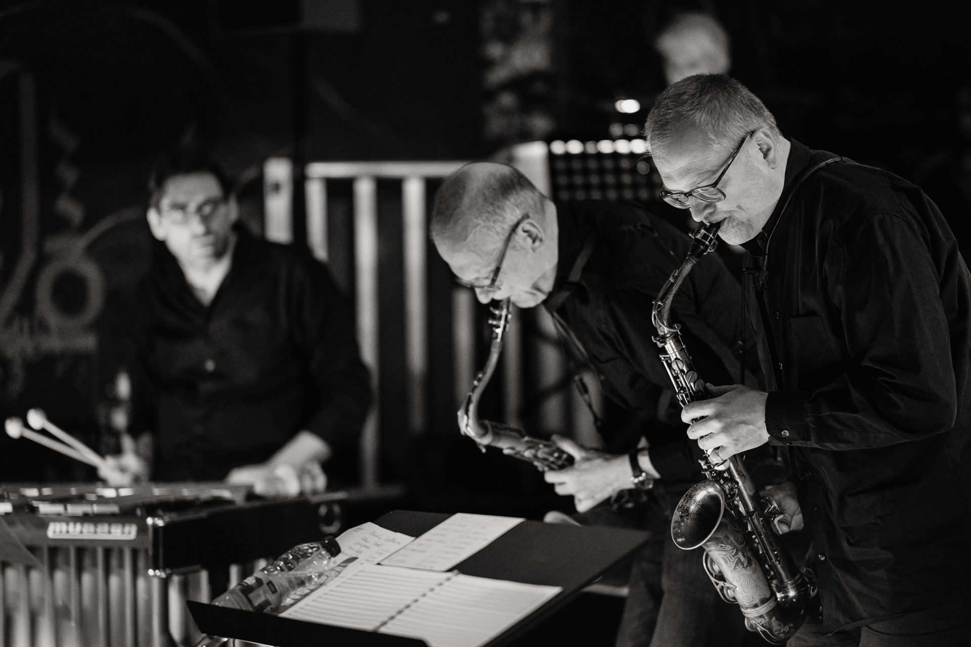 ¶ Die »Big Band Convention« hat eine lange Tradition, aber in den letzten Jahren gab es einige Auftrittspausen … Übrigens eine »richtige« BigBand: 4mal Trompete, 4mal Posaune und 5mal Saxophon. Und als Sahnehäubchen mit dabei ein Baritone-Sax, eine Bass-Posaune und Matthias Struck am Vibraphon. – Mehr Details von der Ankündigungsseite des Veranstalters …