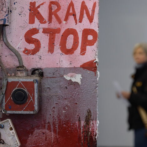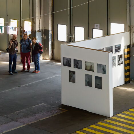 ¶ Alexey betreute die Studenten vor und während der Ausstellung, die in einer alten, ehemaligen, verlassenen Ex-DDR-Panzerhalle eingerichtet war. Der besondere »Charme« der Halle paßte perfekt zur Präsentation und gab dem Ganzen eine interessante Workshop-Atmosphäre.
