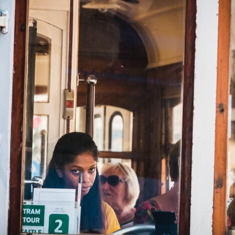 ¶ Mit diesen alten Tram-Linien zu fahren, ist wie eine Zeitreise. Die schmalspurige Bahnen mit einem sehr kurzen Radstand winden sich zentimetergenau „passend“ durch die engen Straßen und Winkel der Stadt, oftmals gerade nur eine Handbreit von parkenden Autos oder Gebäuden entfernt. Das ist Maßarbeit mit Augenmaß der Fahrzeugführer!