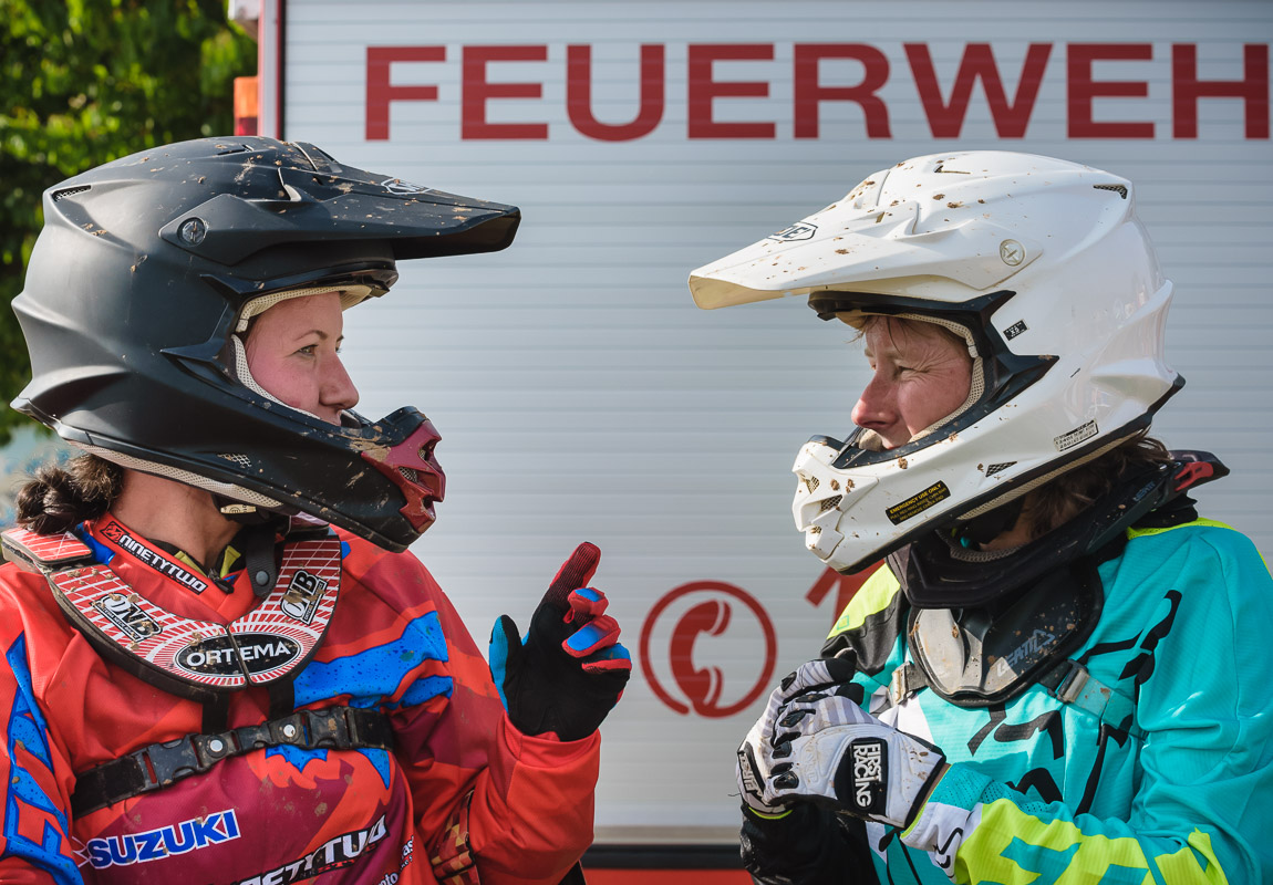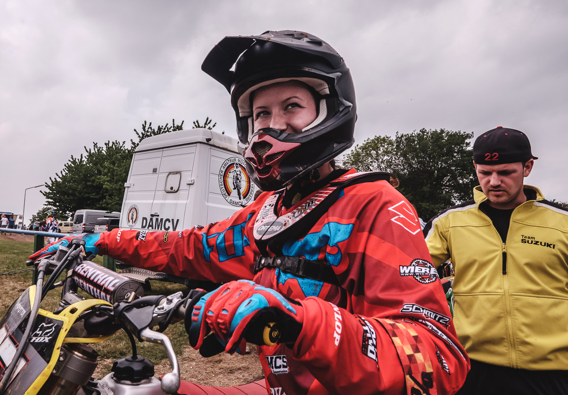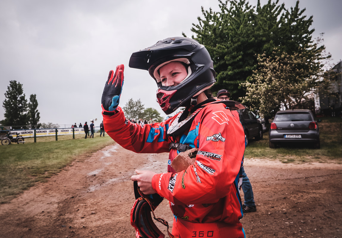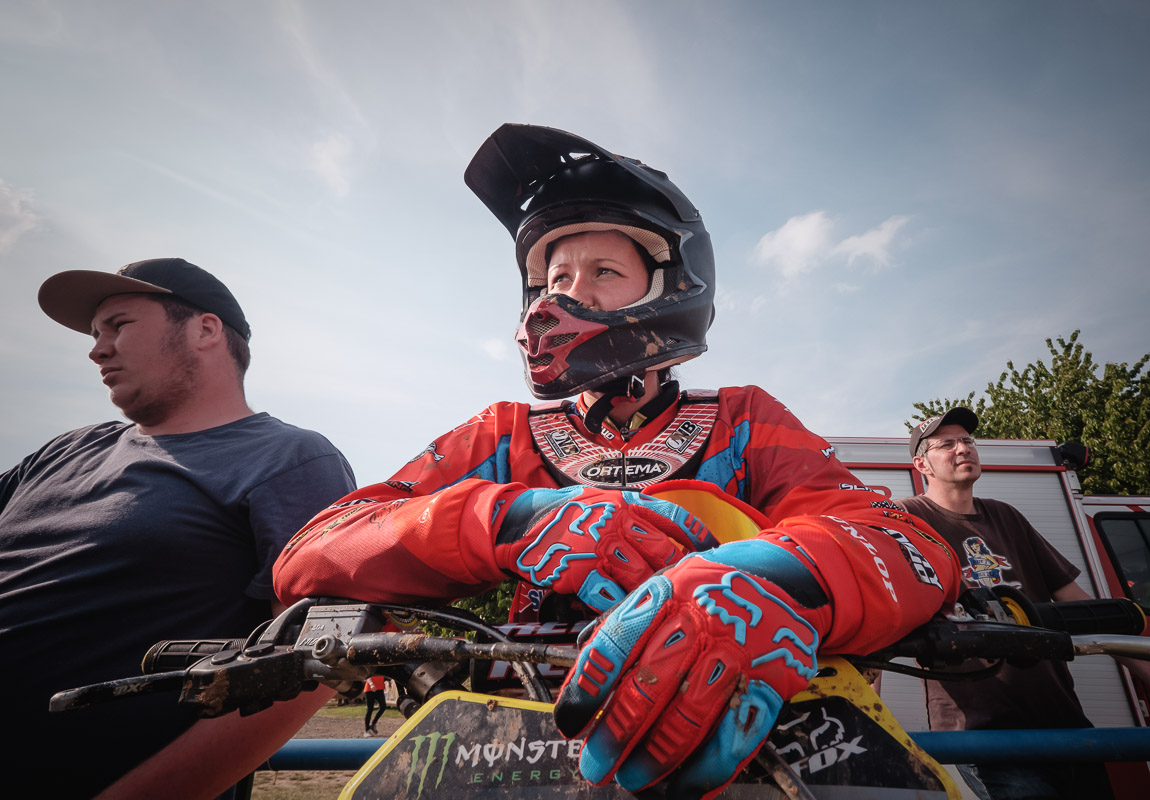 ¶ Zurück zu Selina: sie ist erst relativ spät zum MX-Sport gekommen und es war ihr erster größerer Wettbewerb. Entsprechend grundnervös war sie, als ich frühmorgens am Gelände ankam. – Verabredet hatten wir so eine Art Reportage über den Tag, – »ihren Tag!«. Denn MX ist nicht gerade ein grundsätzlich unfallfreier Sport … Das Wichtigste war deshalb erst einmal ohne Schrammen ankommen!