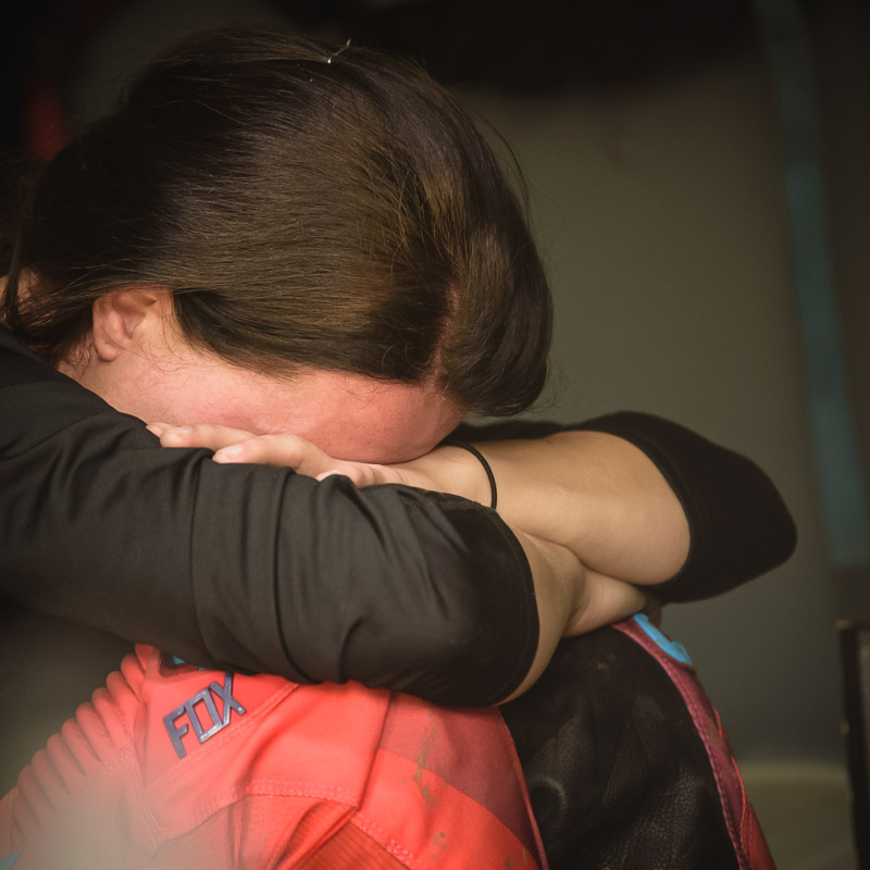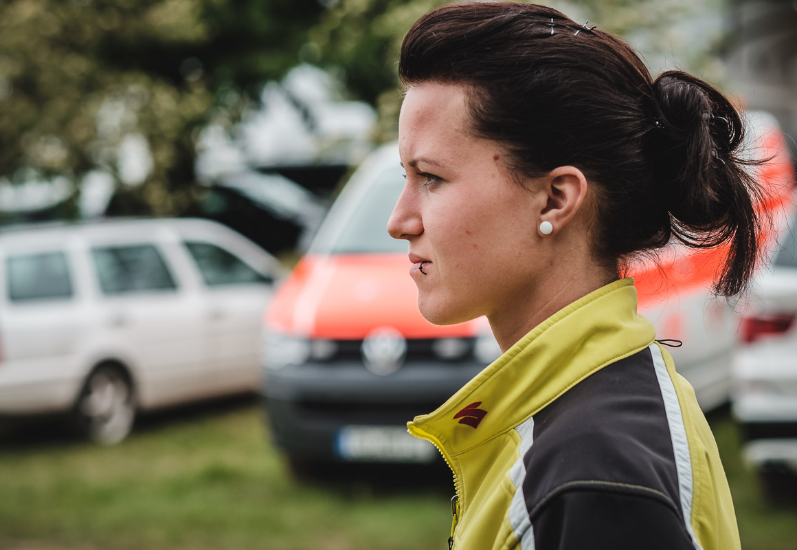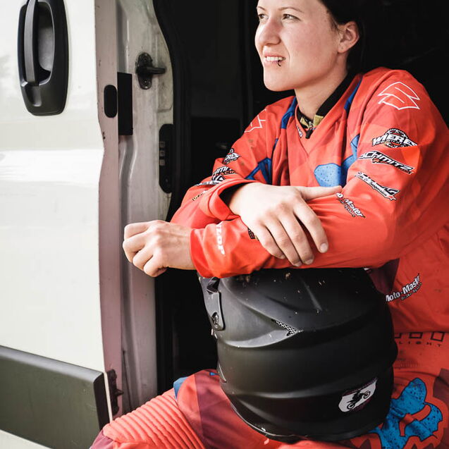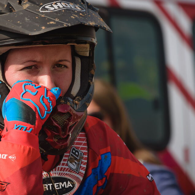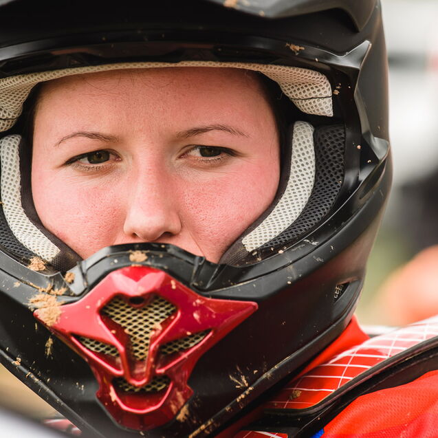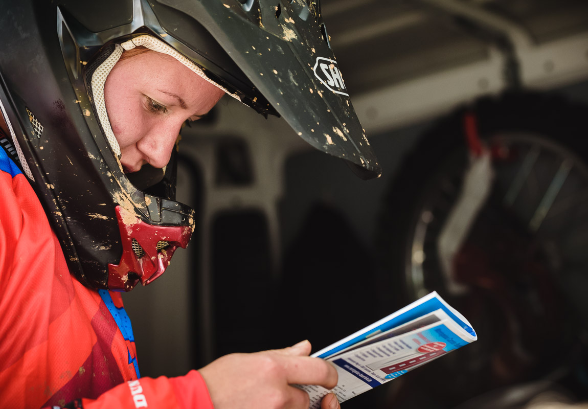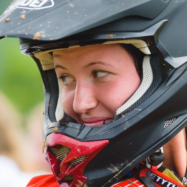 ¶ Zurück zu Selina: sie ist erst relativ spät zum MX-Sport gekommen und es war ihr erster größerer Wettbewerb. Entsprechend grundnervös war sie, als ich frühmorgens am Gelände ankam. – Verabredet hatten wir so eine Art Reportage über den Tag, – »ihren Tag!«. Denn MX ist nicht gerade ein grundsätzlich unfallfreier Sport … Das Wichtigste war deshalb erst einmal ohne Schrammen ankommen!