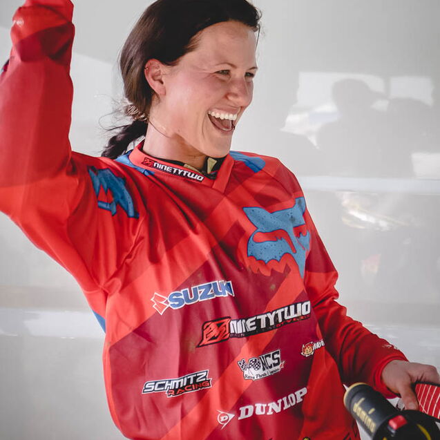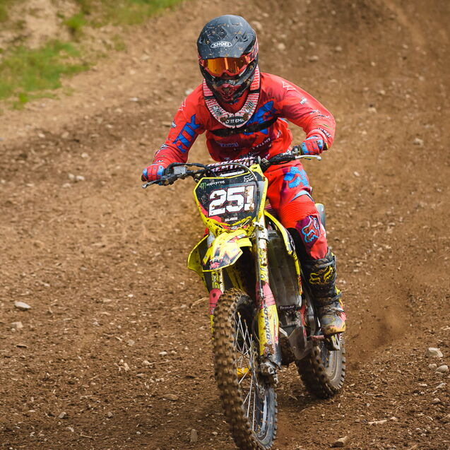 ¶ Übrigens, wenn ich hier von Mädels spreche, dann deshalb, weil es im Frauen-MX-Sport keine Altersklassen gibt. Da finden sich 16jährige ebenso wie 30jährige. Wobei die jüngeren sogar einen Vorteil haben, da sie bereits mit MX großgeworden sind und die Beherrschung der Bikes mit einer natürlichen Unerschrockenheit meistern, daß man schon erstaunt ist. Jedenfalls rasen die mit ihren Bikes die Strecke genauso rauf und runter, wie die männlichen Fahrer.