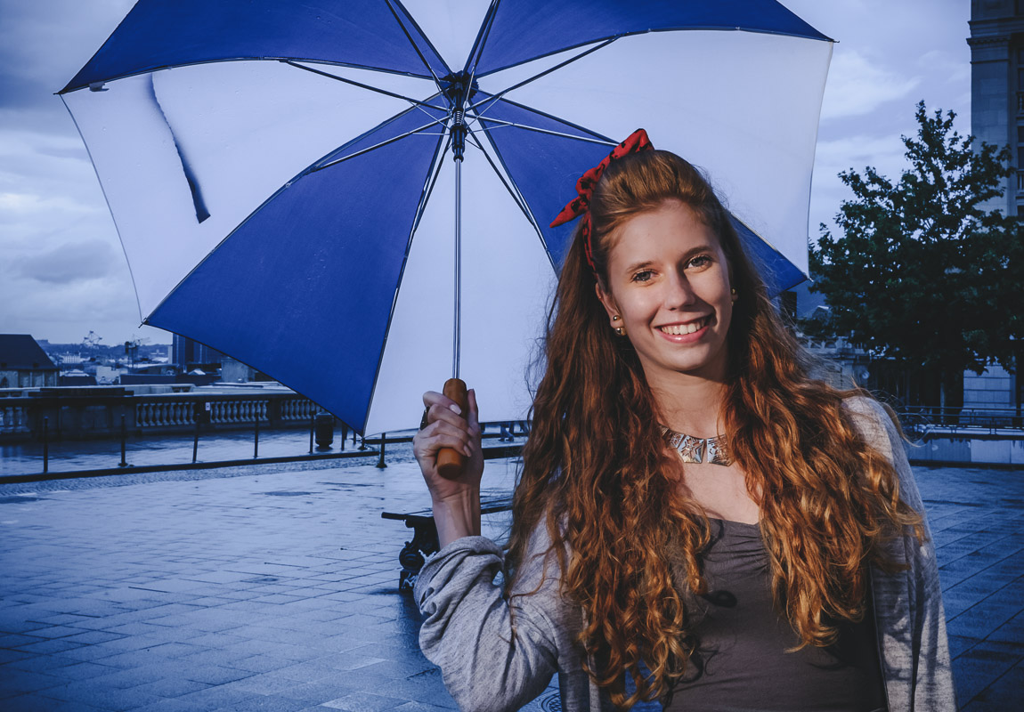 ¶ Während sich Kevin um die Street-Photographie kümmerte, war es an Bert den Teilnehmern ein wenig Street-Porträt-Model Photoshooting nahezubringen. Dabei war uns das Wetter nicht gerade wohl gesonnen (… ge-sonnen?? geregnet hat es!!). – Wenigstens Maureen, die als Model einen phantanstischen Job machte, hellte die Szenerie auf … Danke Maureen, Du warst klasse! – Schade, daß es dann doch so schnell dunkel wurde, ein paar Bilder mehr, wären schon noch cool gewesen …