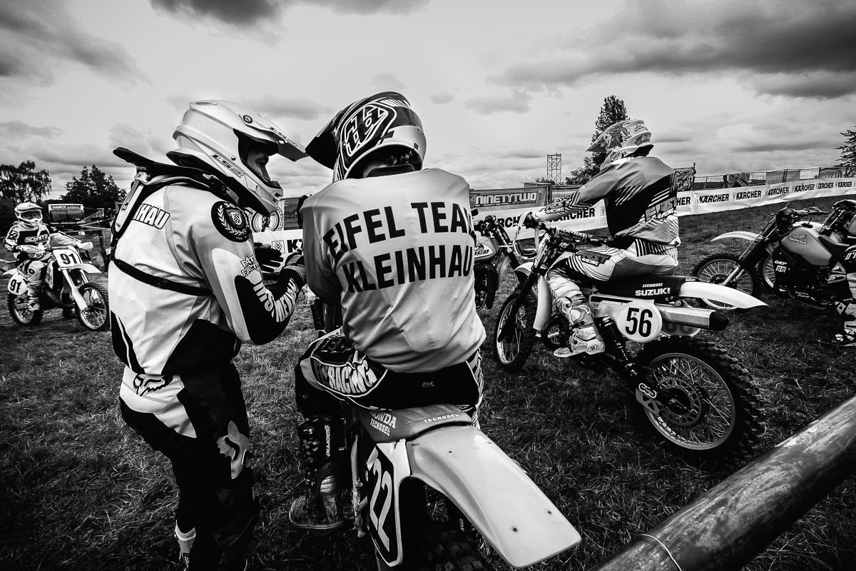 ¶ OK, hier die zweite Bildstrecke vom MX-Wochenende beim MSC-Wisskirchen. Zwar war das Wetter immer noch sehr – ähem – na, eher suboptimal, aber immerhin trocken. Das störte die Akteure und die Besucher sowieso nicht, denn Platz und Strecke waren knüllevoll …