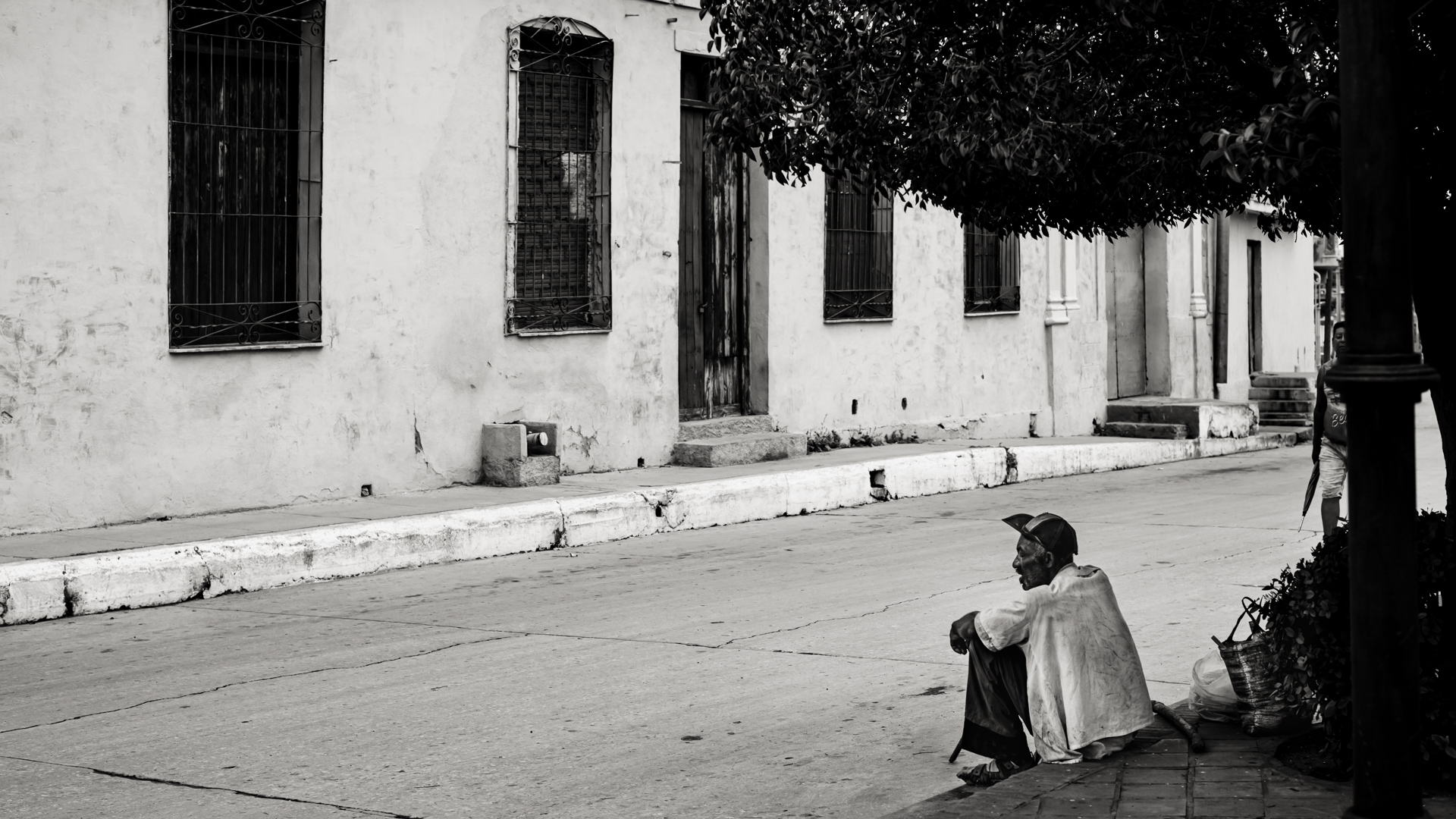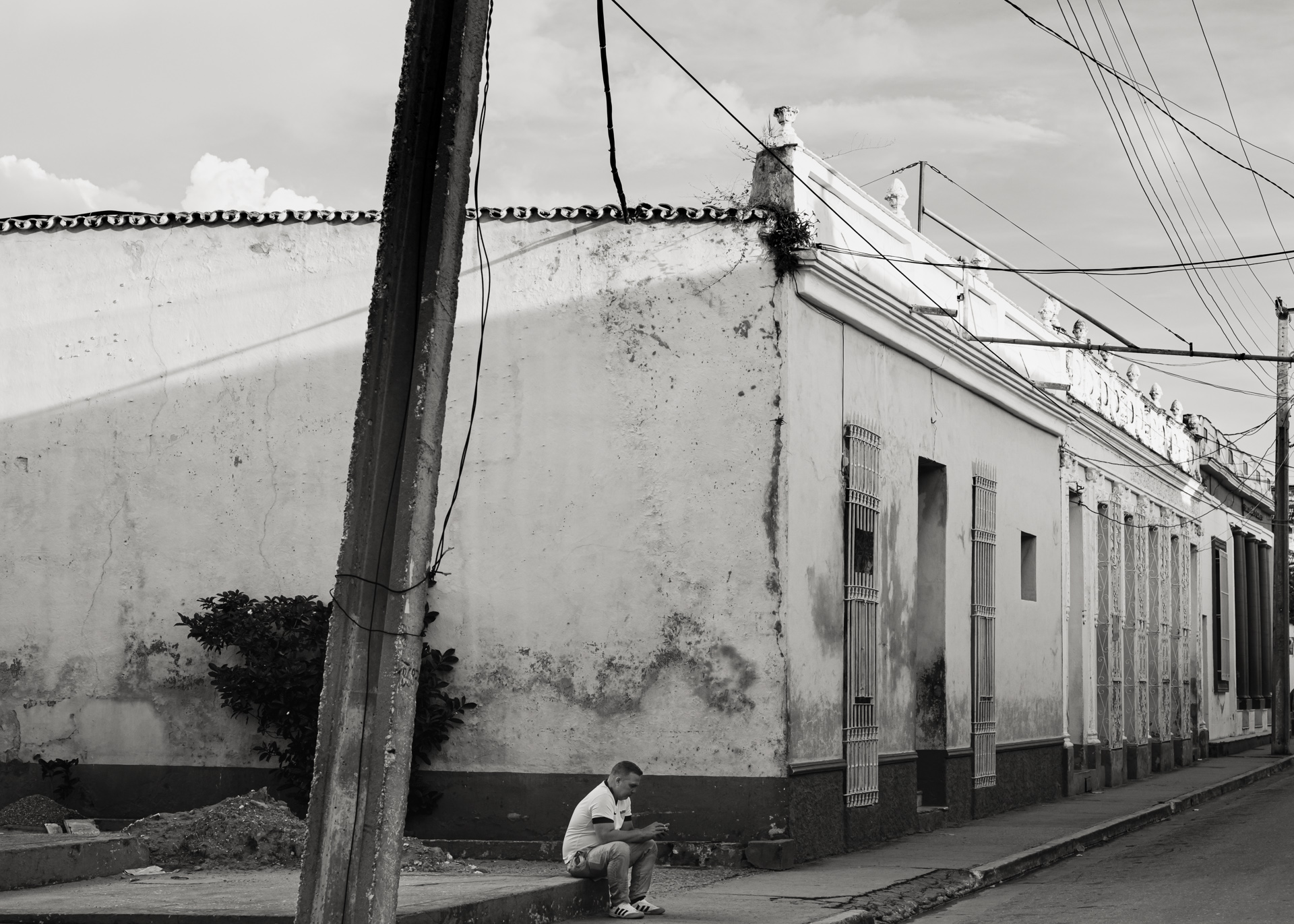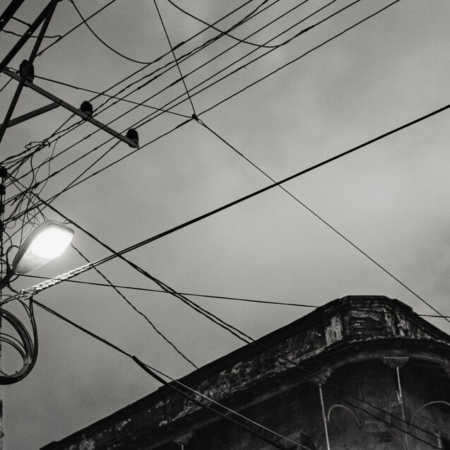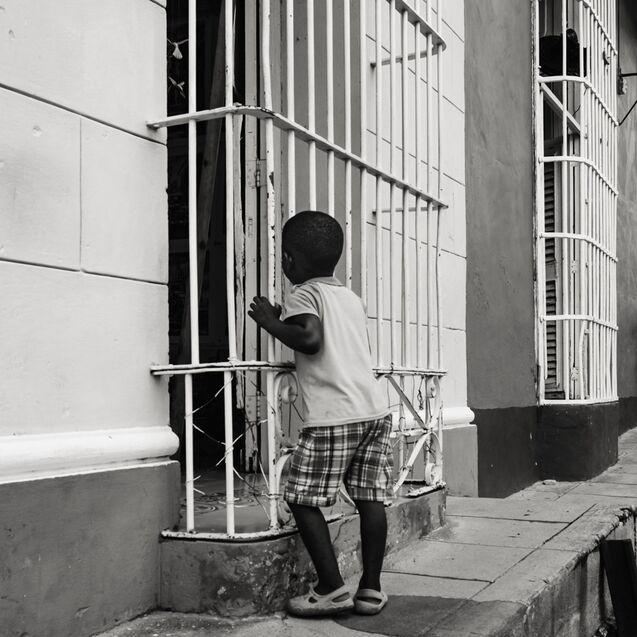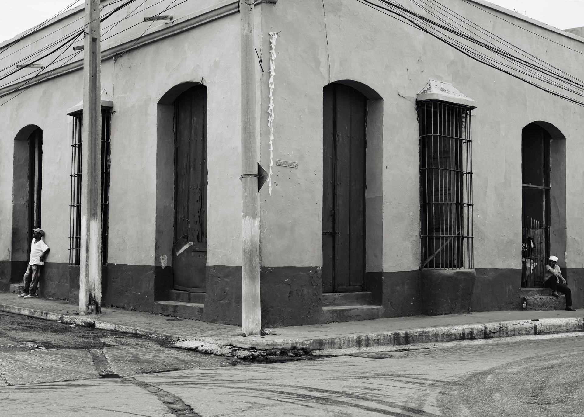 ¶ Sosehr die farbige Buntheit auf den ersten Blick beeindruckt, kann sie nicht darüber hinweg täuschen, daß es auch eine andere Seite des Lebens in Trinidad gibt, – dann, wenn die Lichter aus sind, die Sonne nicht mehr ganz so hell die bröckelnden Fassaden bescheint und sich eine gewisse Tristesse über die Szenerie legt. Diese Stimmung in Bildern festzuhalten, dazu eignet sich die Schwarz-Weiß Darstellung nun einmal besser.