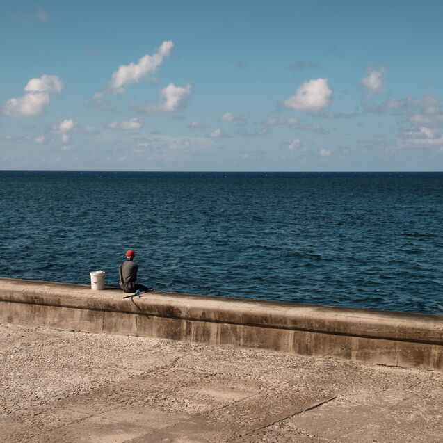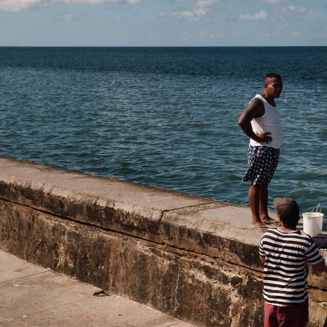 ¶  Obwohl offiziell verboten, eilen um diese Tageszeit viele Kubaner dorthin auf die Jagd nach einem schmackhaften Abendessen ans Ufer … Schaut man nach einer Weile jedoch genauer hin, sieht man, daß es nicht nur um die »Jagd« nach frischem Fisch geht, sondern auch um zwischenmenschliche Interessen … embarassed