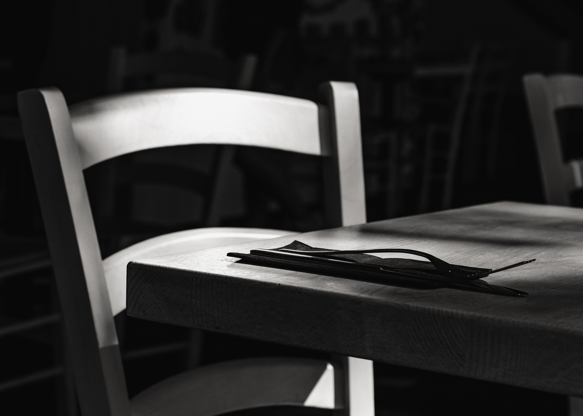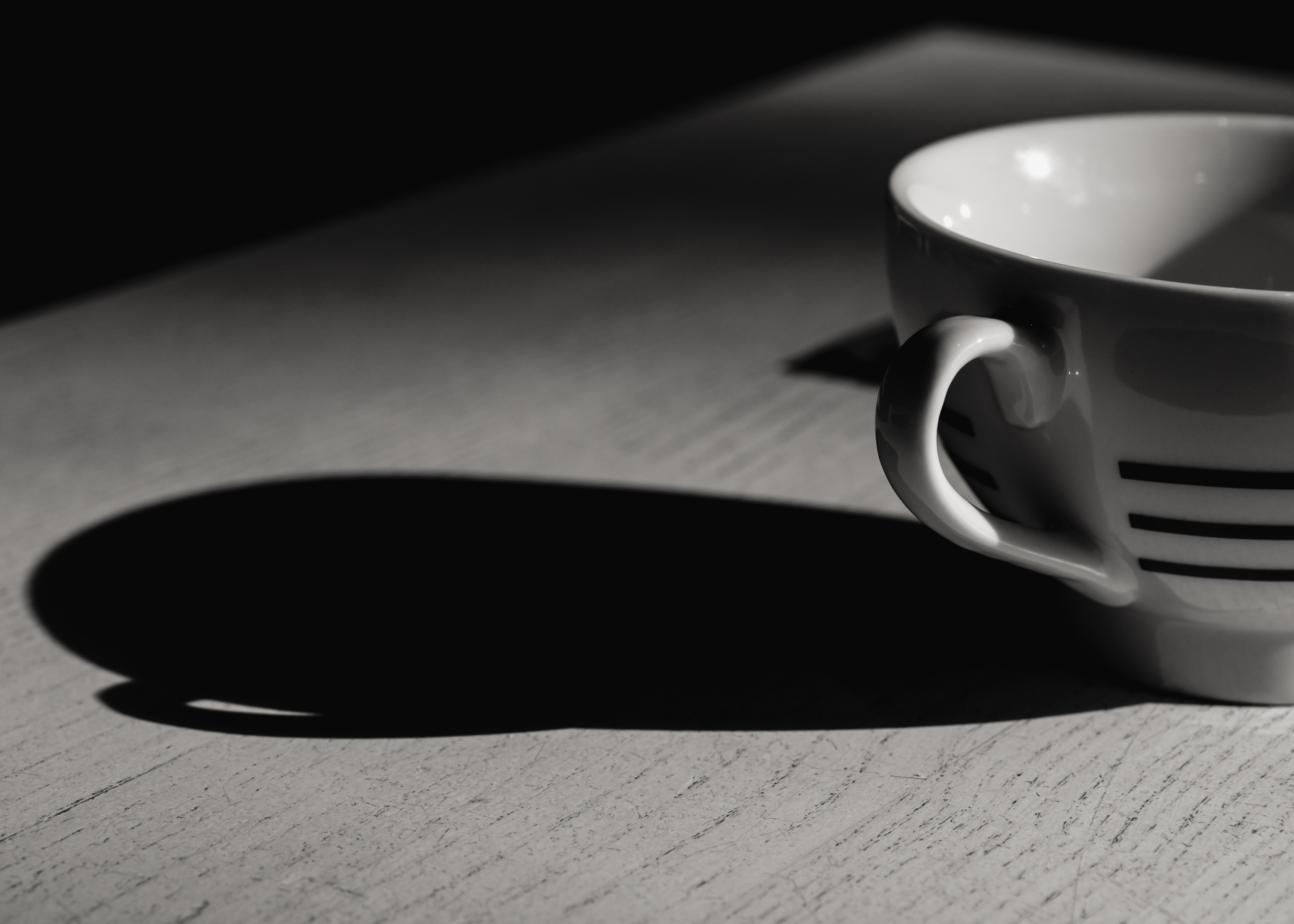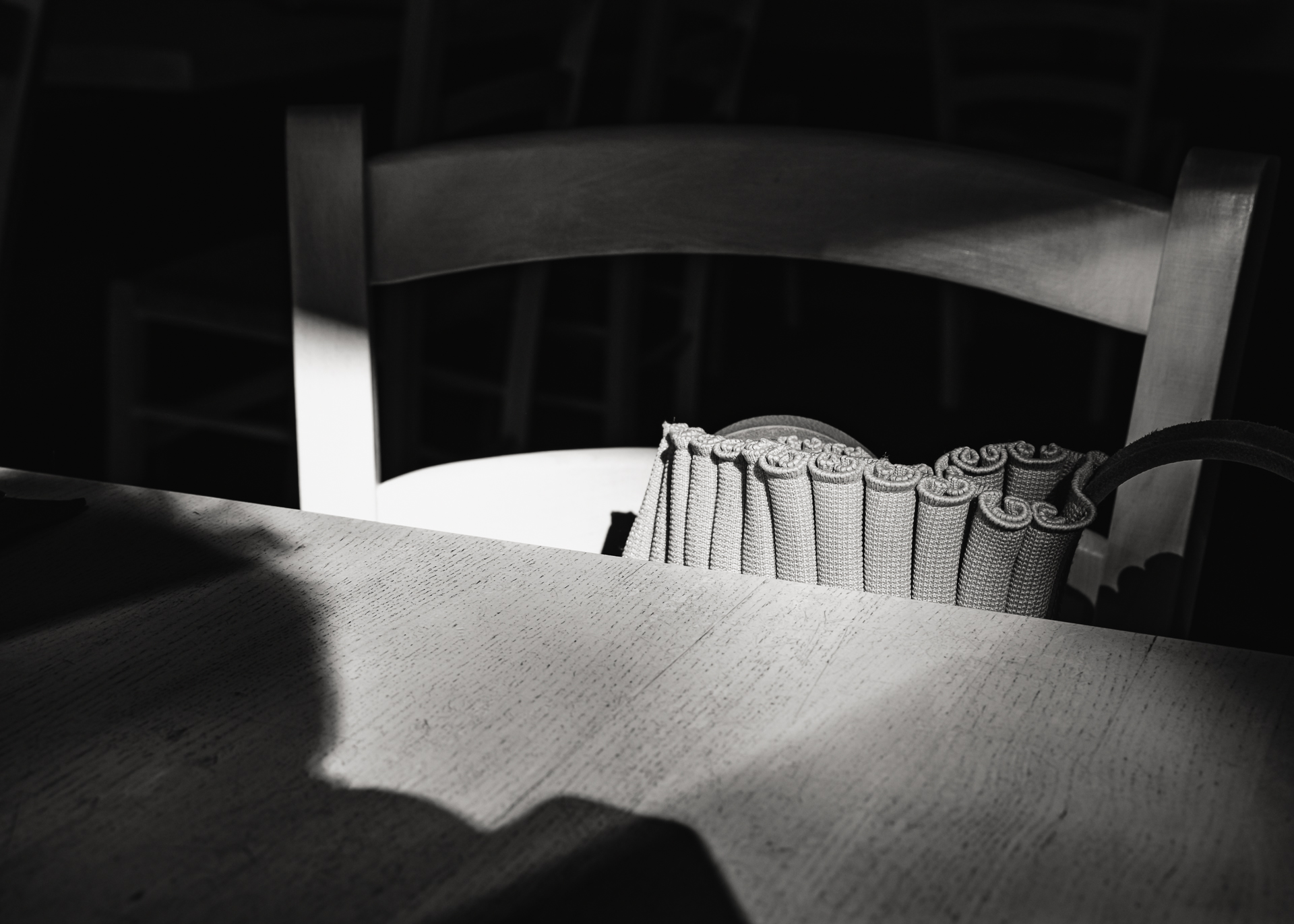 ¶ Nach einem ausgiebigen Rundgang haben wir uns dann ins P'Ti Breizh gesetzt. Die große Fensterfront ließ die pralle Sonne herein. Eine gute Gelegenheit Tisch, Stuhl und die Tassen als grafische Elemente einzufangen …