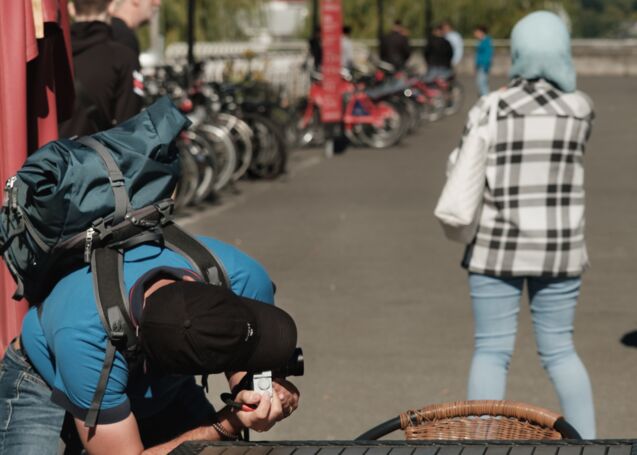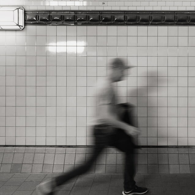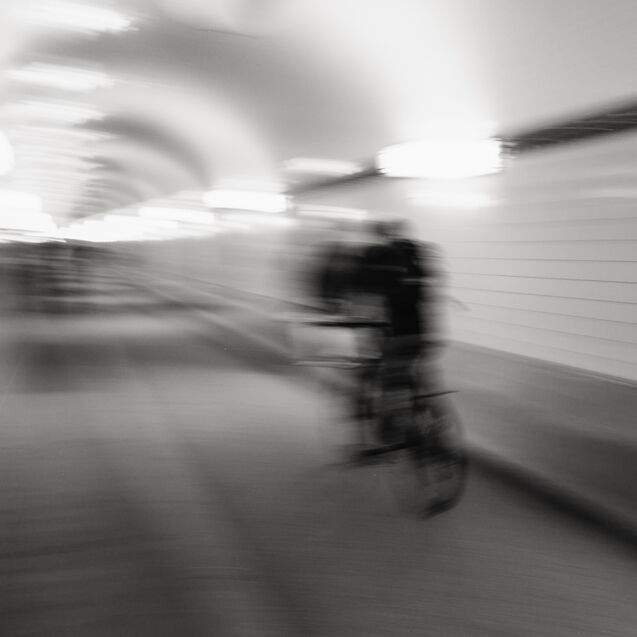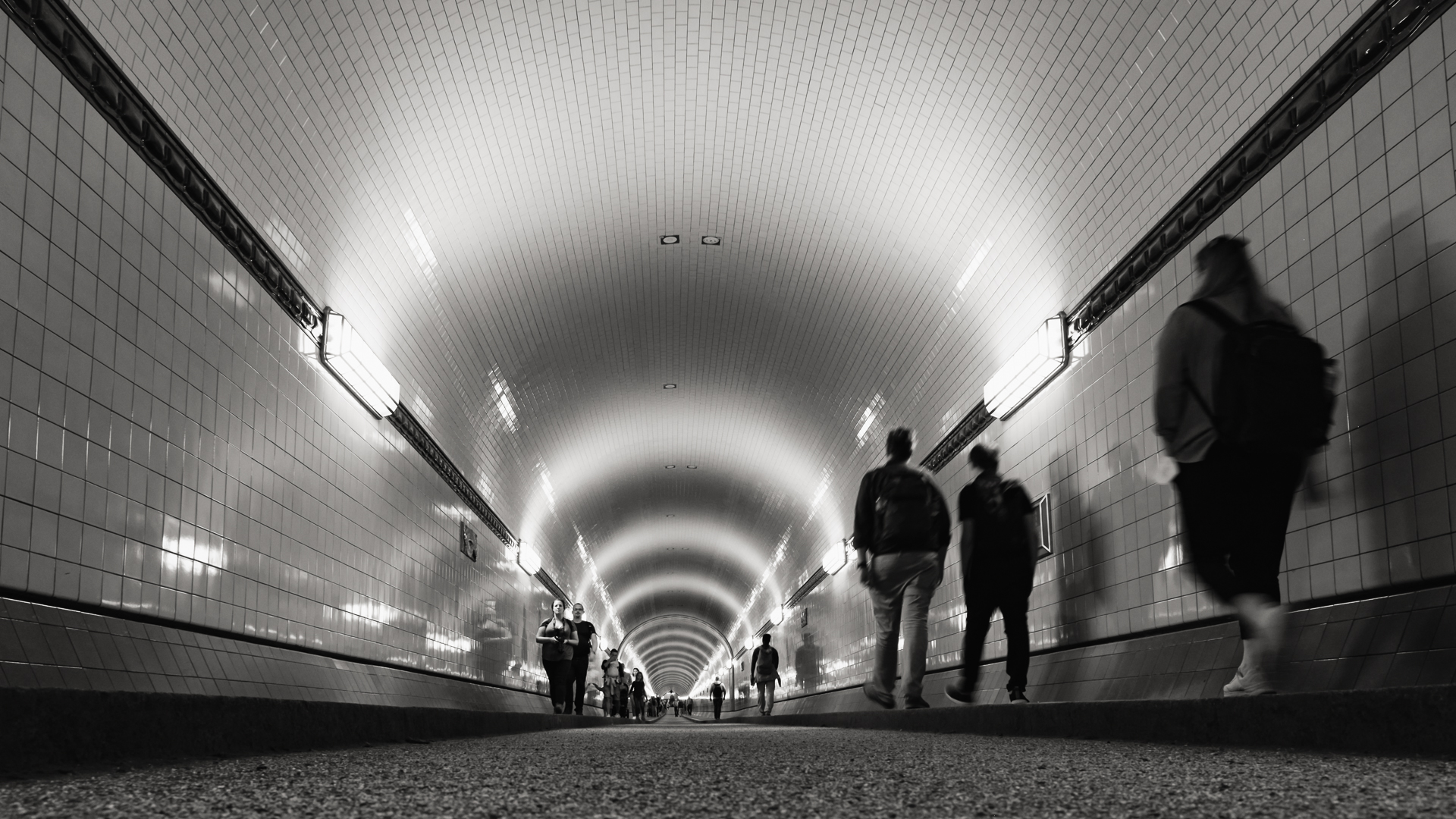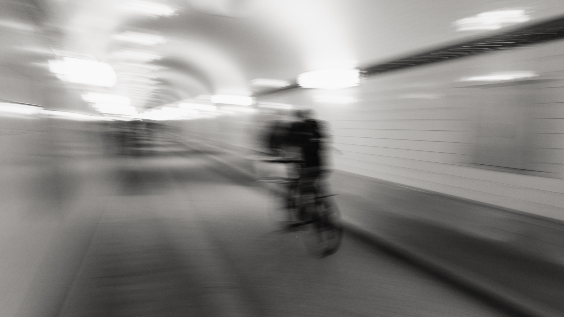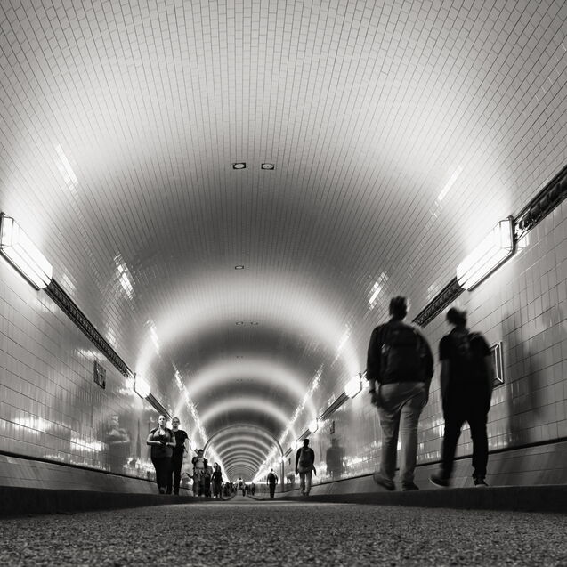 ¶ Wir sind natürlich durch den Elbtunnel gelaufen. Hier waren möglichst weitwinkelige Objektive gefragt um die Perspektive in der Röhre hinzubekommen, – alternativ habe ich mich mal an »Bewegungsbildern« versucht …