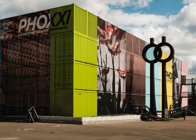 ¶ Interessanter waren da schon die weithin sichtbaren, bunten Container-Ausstellungshallen der PHOXXI, die ich allerdings an diesen Tagen nicht mitnehmen konnte, – die Ausstellung war gerade in Vorbereitung. Mehr zum Thema findet ihr auf der Mini-Homepage der Deichtorhallen.
