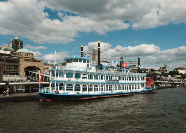 ¶ Tja, ein wenig »Postkarte« muß auch immer mal sein. – Die Bilder von der Speicherstadt und den Vergnügungsbooten sind ja selbsterklärend. Obwohl, dieser »Mississippi-Dampfer« paßt für mich nicht so ganz zur Hafenstadt Hamburg. Aber, na ja … die Leute mögen es wohl sehr, war jedenfalls immer proppenvoll.