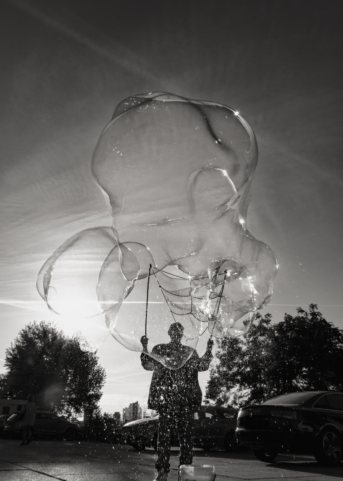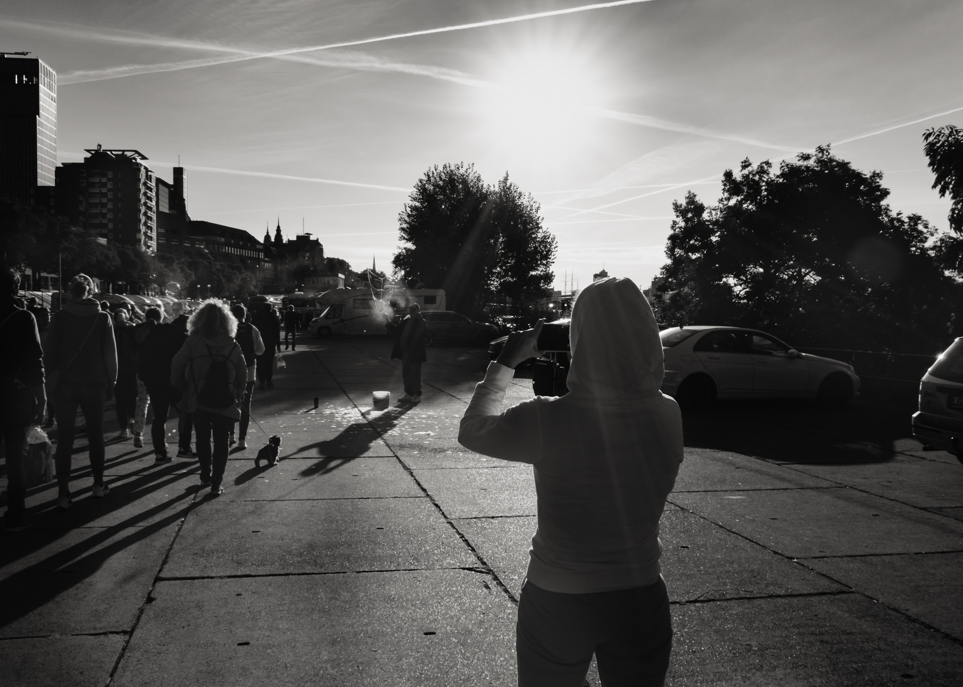 ¶ Also habe ich mich dann mehr im Bereich Fischmarkt und Landungsbrücken aufgehalten. Etwas abseits von den Verkaufsständen auf dem Fischmarkt entstanden einige Schnappschüsse von einem Kinderfreund, der riesige Seifenblasen zaubern konnte. Die Kids, aber auch viele Erwachsene, hatten mächtig Spaß, – Freude kann so einfach sein …