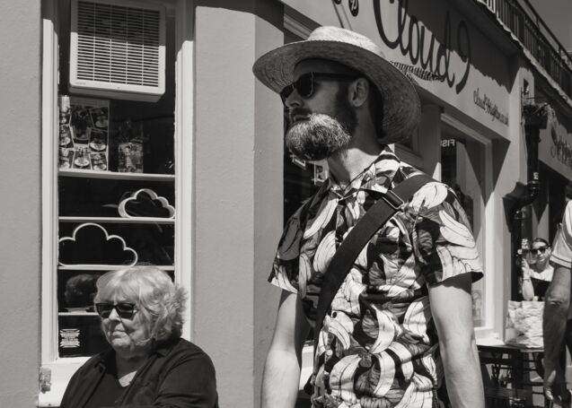 ¶ Vorneweg: zwei Tage Street-Photographie mit den beiden, da kommt schon einiges Material zusammen. – Im Großen und Ganzen hat Brighton zwei Hotspots: im Stadtkern gibt es eine interessante, bunte Multi-Kulti-Künstler-Szene, – ein Eldorado für die Streetphotographie: zuweilen skuril, vielleicht auch irgendwie typisch englisch. – Der andere Hotspot ist die Uferpromenade, die Küste und die Seebrücke mit viel Vergnügungsangeboten, ebenfalls sehr typisch … 😊😂